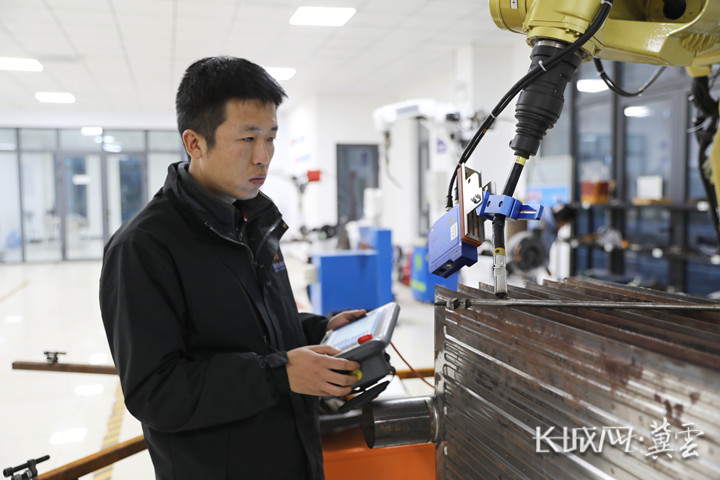 山东兆契智能科技有限公司工作人员对焊接机器人进行性能测试。长城网·冀云客户端记者 李珊珊 摄