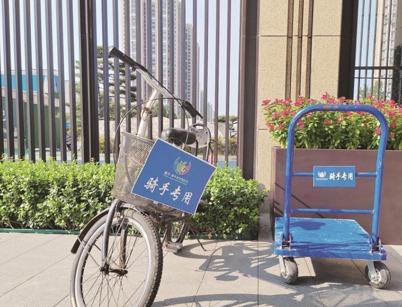 据了解,8月初,复兴区总工会与相关街道、社区、物业达成联手共建“骑手友好型社区”的协议。截至目前,该区已共建近200个“骑手友好型社区”。前百家社区党支部书记安小军介绍,“骑手友好型社区”的标准是“六个一”服务机制,即一个暖心标识、一张小区平面示意图、一套颜色地标、一个专属停车位、一辆内部转运车、一个小哥二维码。骑手在小区内可骑自行车送单,大件可用小拖车搬运,既能有效缩短骑手步行距离,又提高了送单效率,还确保了业主的人身安全。