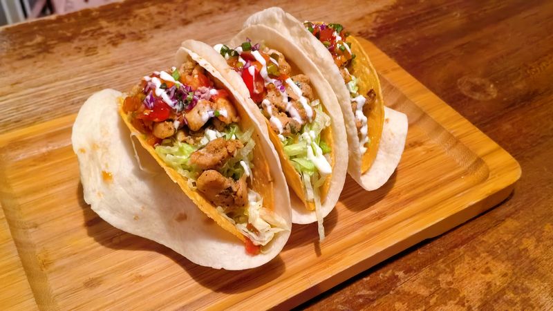色彩斑斓的塔可充满拉丁风情,一口咬下,迎来的是多重口感的混合礼花。鸡肉的鲜嫩,蔬菜的清脆,酱料的细腻交织在一起,让人回味无穷。