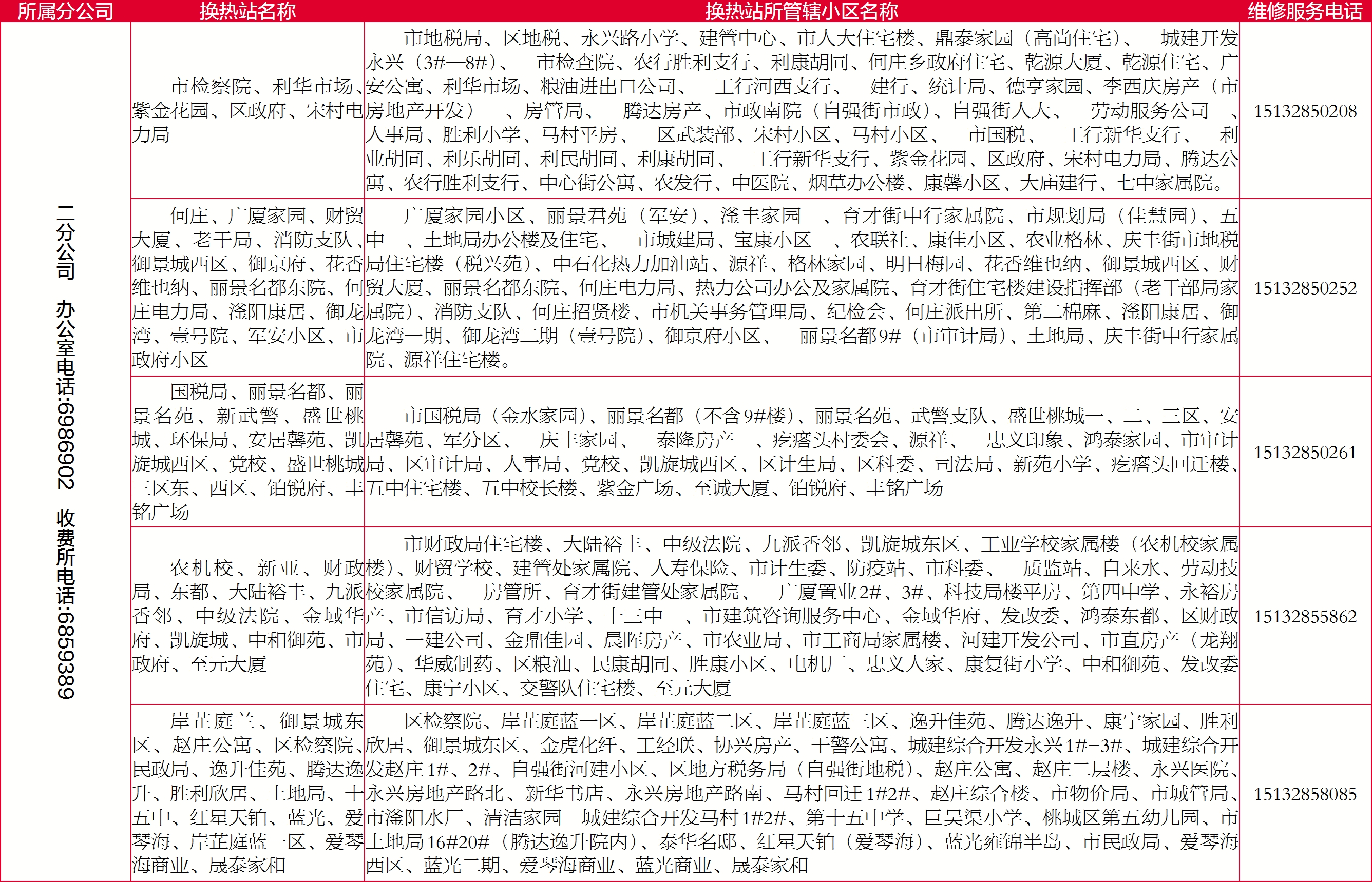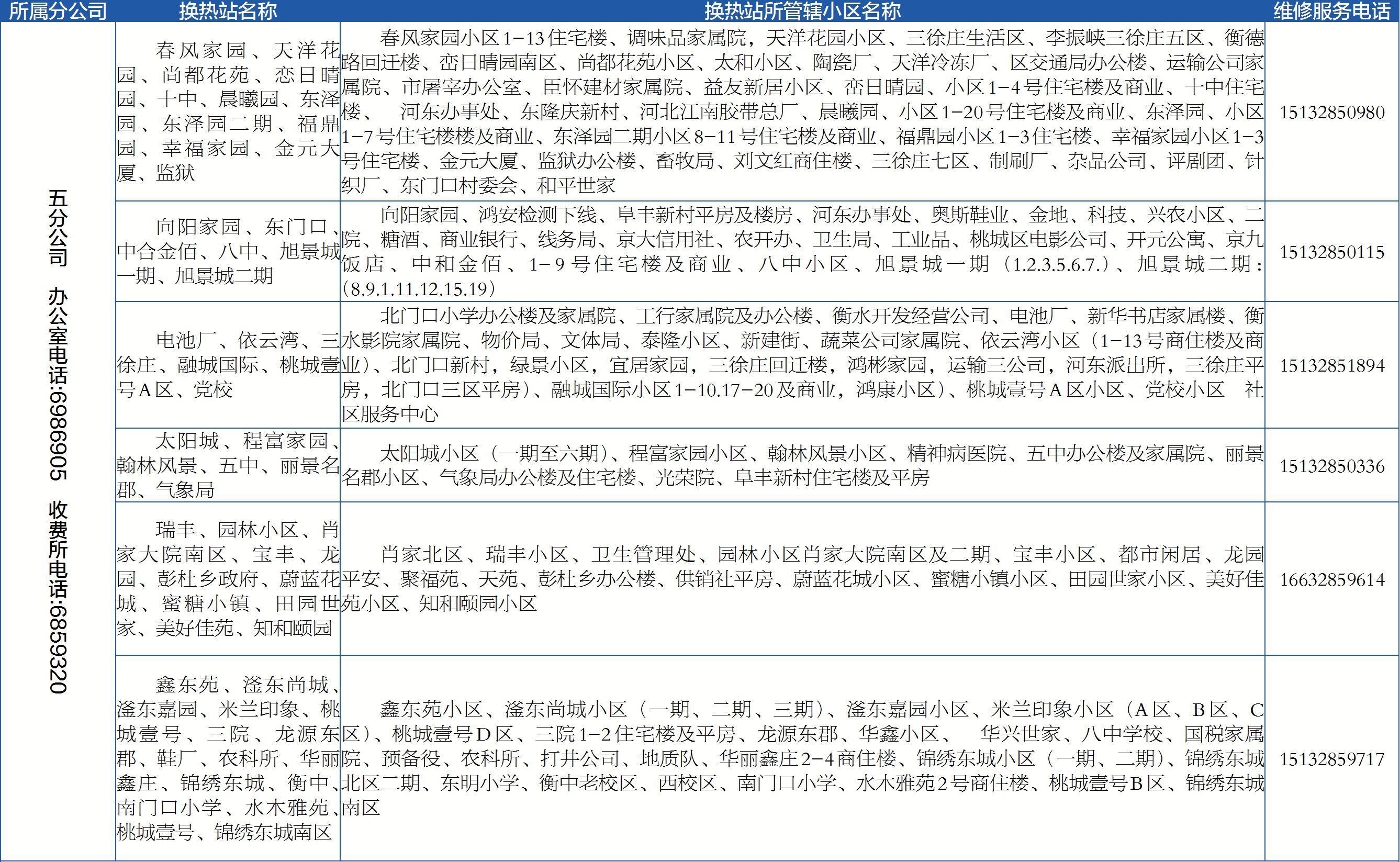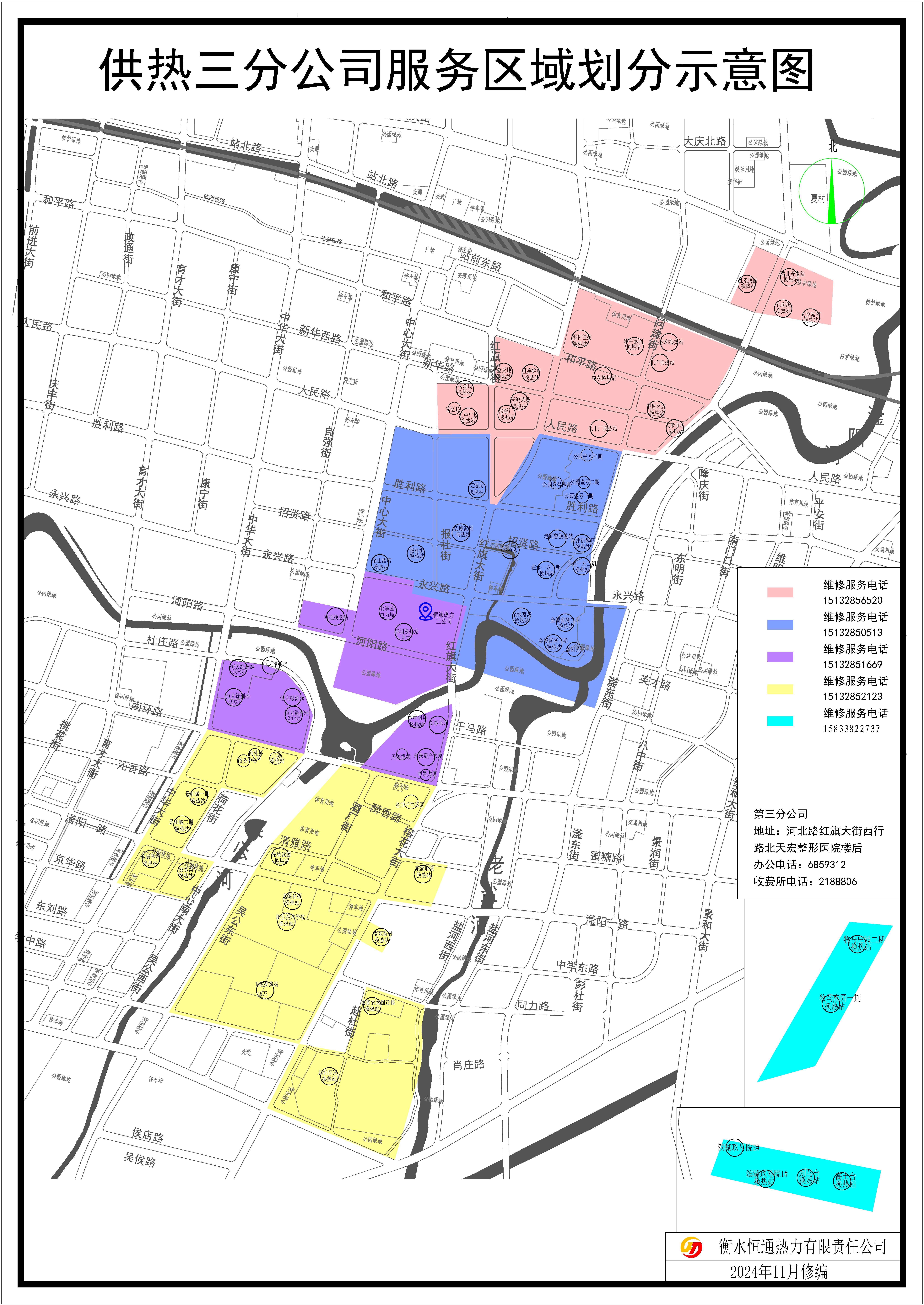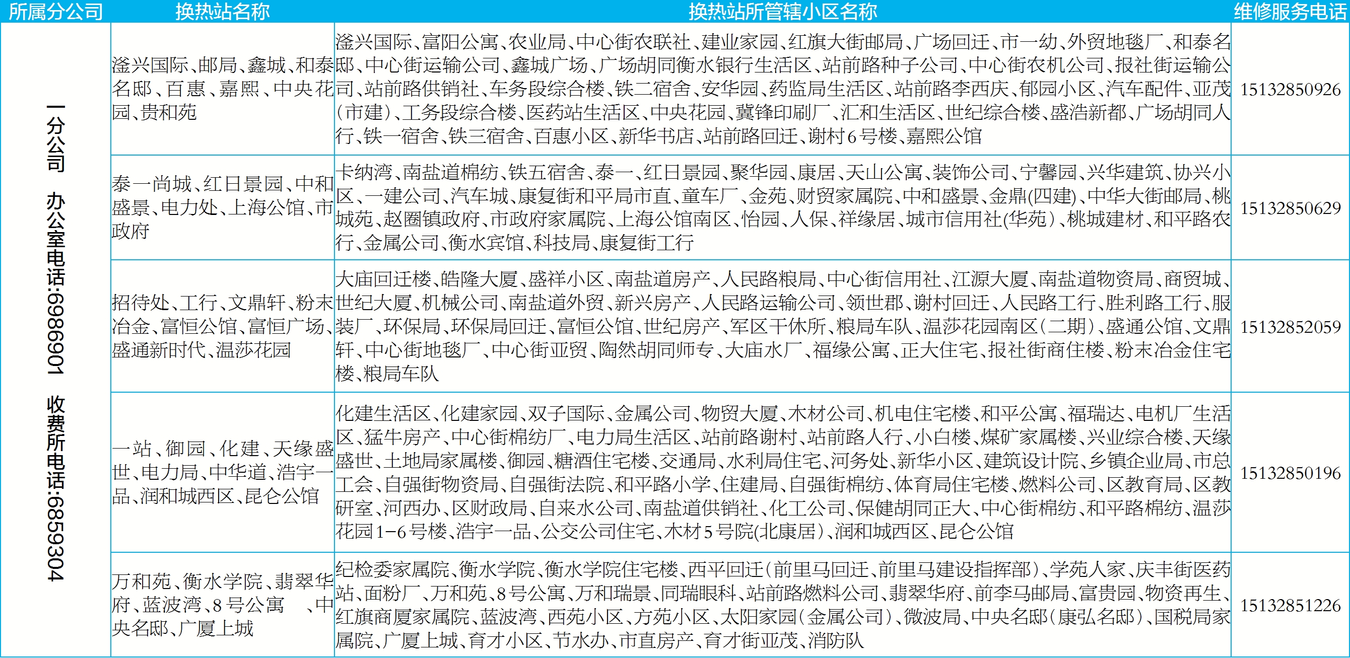 为切实为热用户提供安全、优质、高效的供热服务,及时解决热用户反映问题,2024—2025采暖季衡水恒通热力有限责任公司积极拓宽供热问题反馈处理渠道,如有用热问题,可及时拨打所属辖区电话或客服热线报修,客服热线2101111开启24小时接听服务,全天候为用户解决用暖诉求。