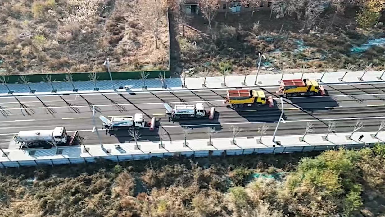 此次演练模拟清理路面积雪,共出动除雪专用雪铲车10辆、雪滚车11辆、融雪剂撒布车10辆,应急保障人员50人。现场,随着指挥调度中心下达清雪指令,清雪作业车辆依次启动,沿规定区域的城市道路缓缓行进,协同配合开展作业,通过撒、推、铲等多种方式,高效清除路面积雪。