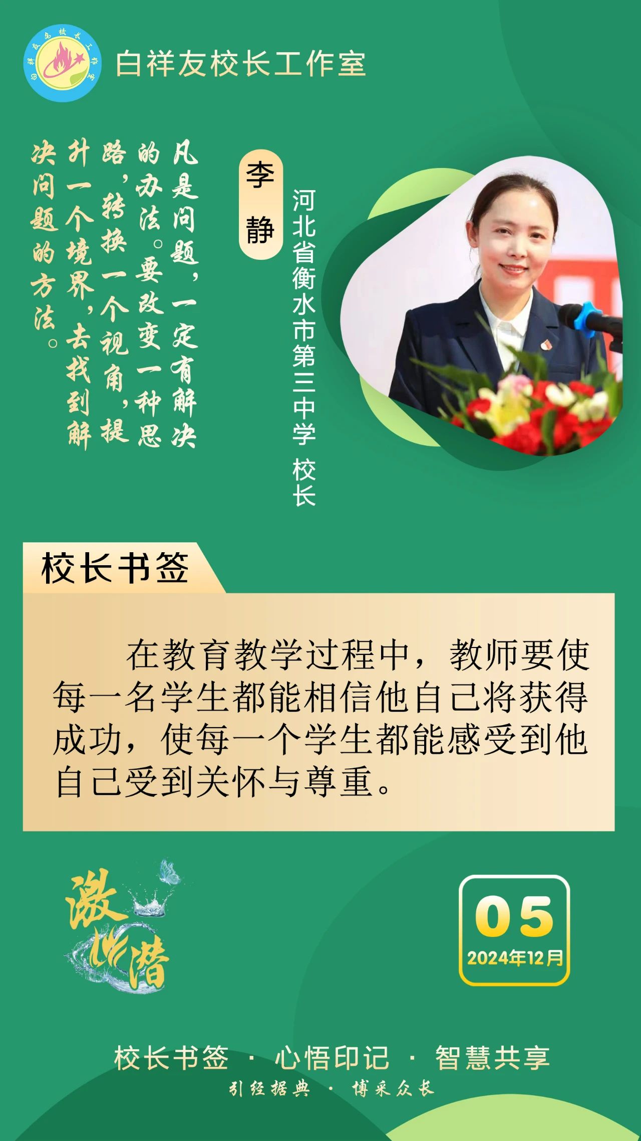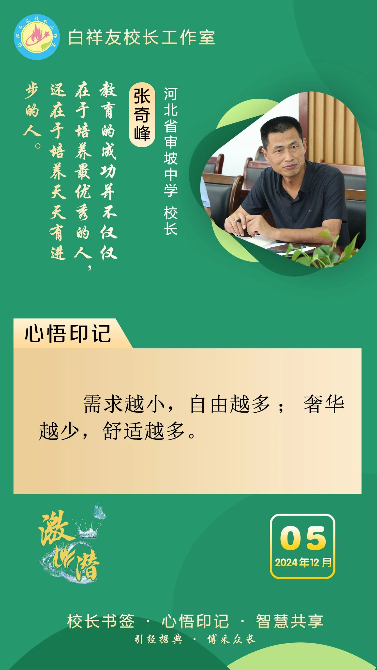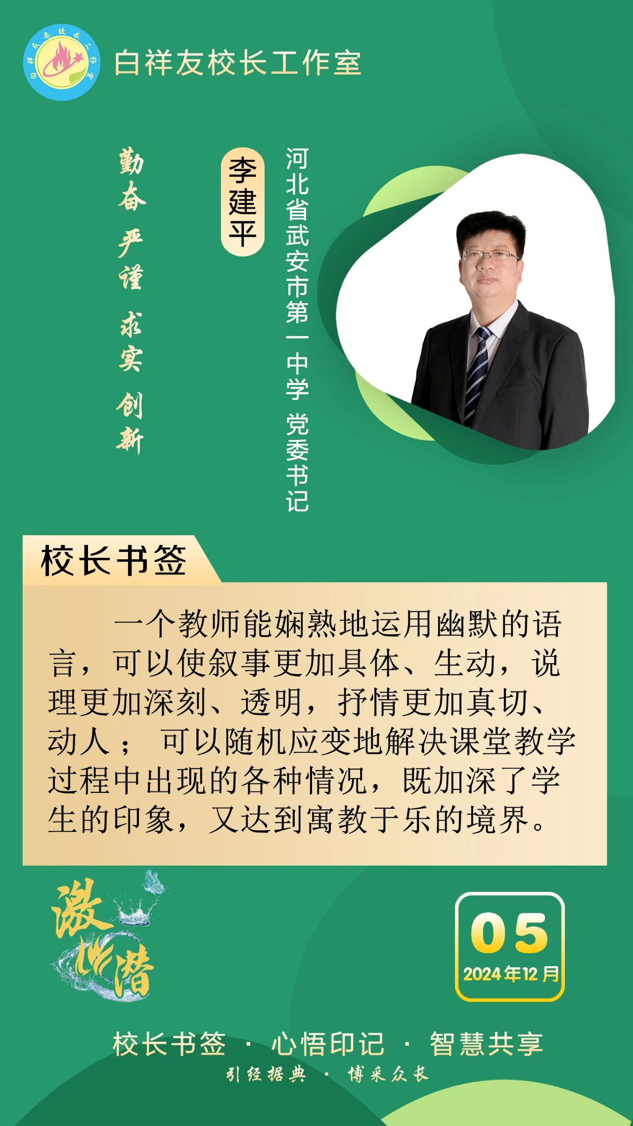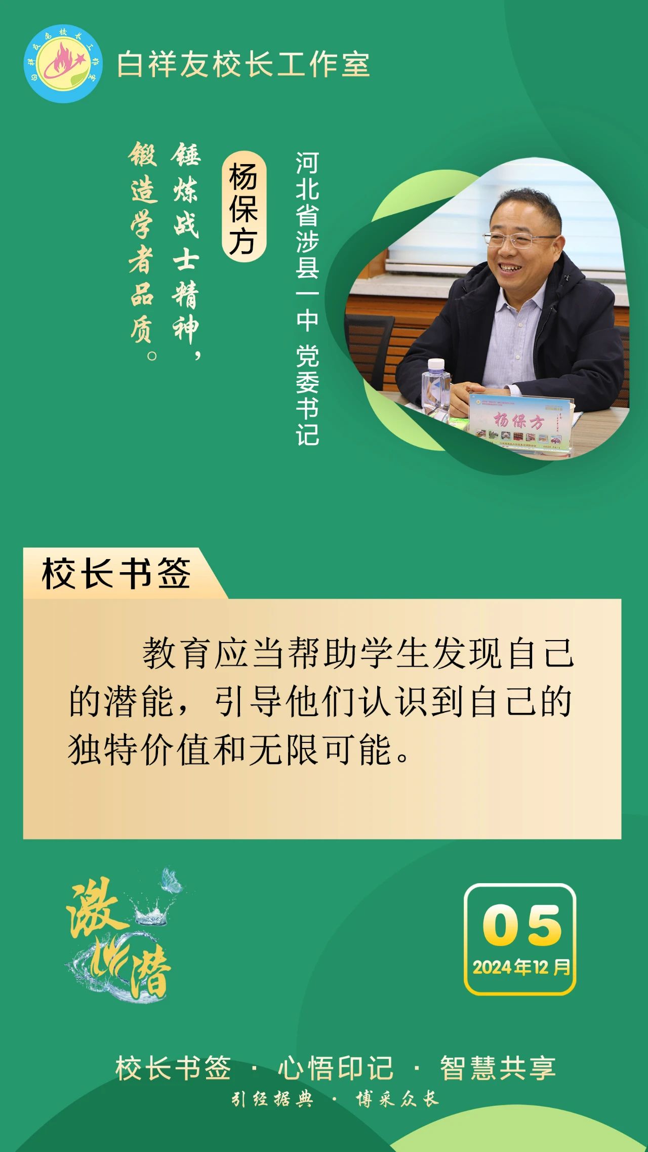 “白祥友校长工作室”成立于2019年4月,是教育部“国培计划”中小学名校长领航工程、河北省首批名校长工作室,目前省内外成员校48个。工作室坚持“资源共享、智慧共融、互助共赢”理念,已成为思想碰撞的交流场,资源共享的品牌站,成果展示的辐射源。
