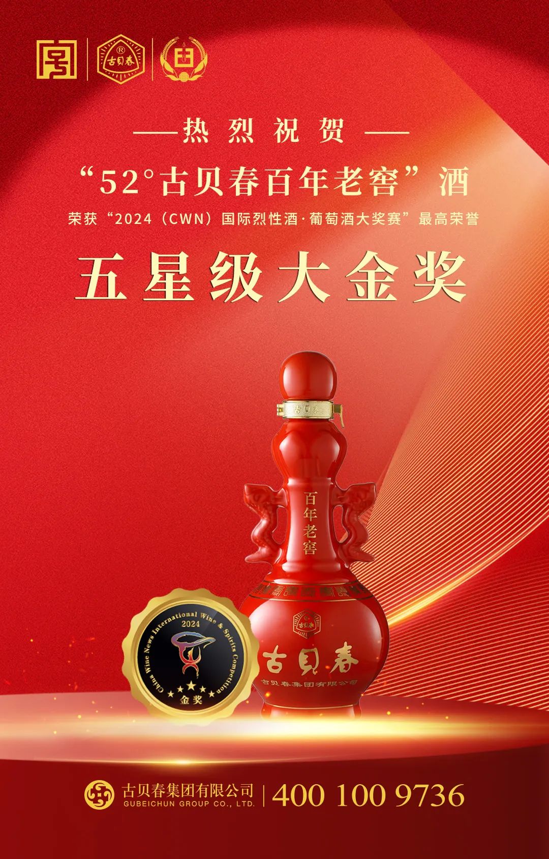 12月8日,2024(CWN)国际烈性酒·葡萄酒大奖赛落下帷幕,评选结果正式揭晓。在这场汇聚了数百款优质酒品的激烈竞争中,古贝春集团有限公司选送的52°古贝春百年老窖,凭借其独特风味与卓越品质,一举夺得大赛的最高荣誉——五星级大金奖。