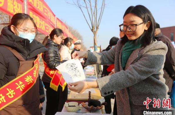 图为活动现场,群众展示制作的年画拓印作品。 薛涛 摄
