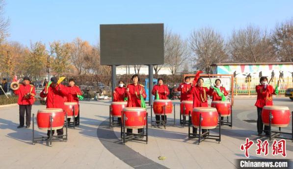 图为活动现场,正在开展群众文化锣鼓活动。 薛涛 摄