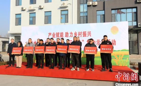 图为活动现场,衡水市相关部门与周窝镇政府、当地企业、农户等签约或授信提供针对性信贷服务、民生救助责任保险等。 薛涛 摄
