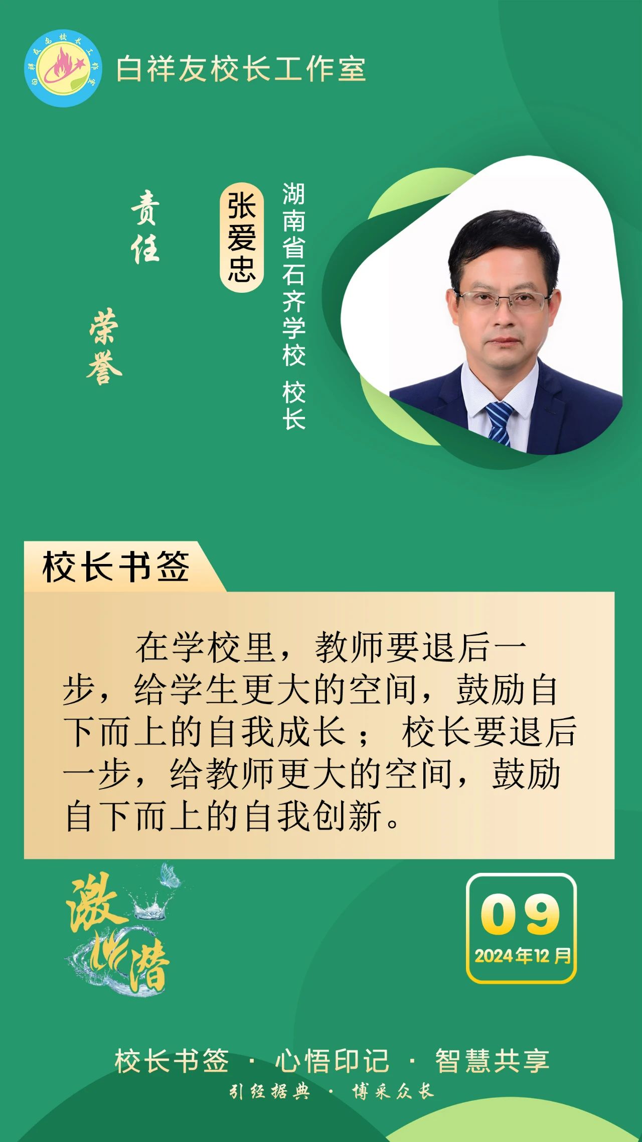 “白祥友校长工作室”成立于2019年4月,是教育部“国培计划”中小学名校长领航工程、河北省首批名校长工作室,目前省内外成员校48个。工作室坚持“资源共享、智慧共融、互助共赢”理念,已成为思想碰撞的交流场,资源共享的品牌站,成果展示的辐射源。