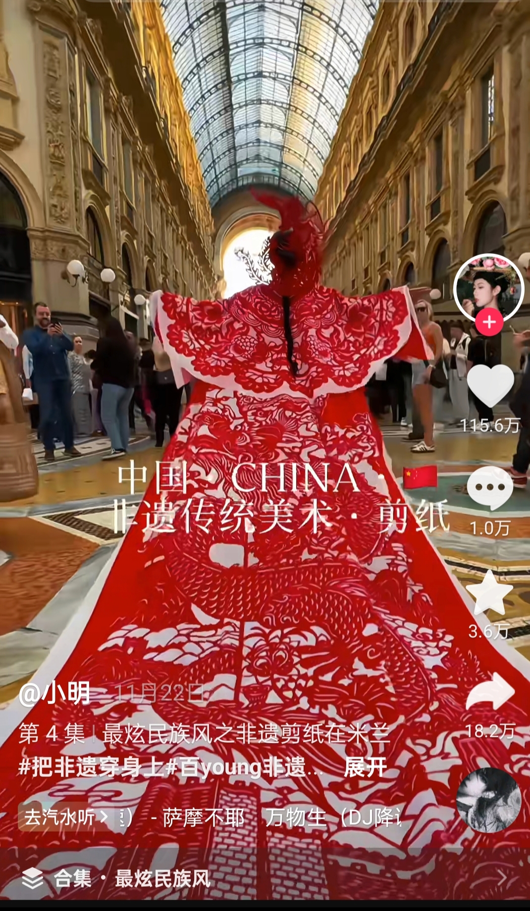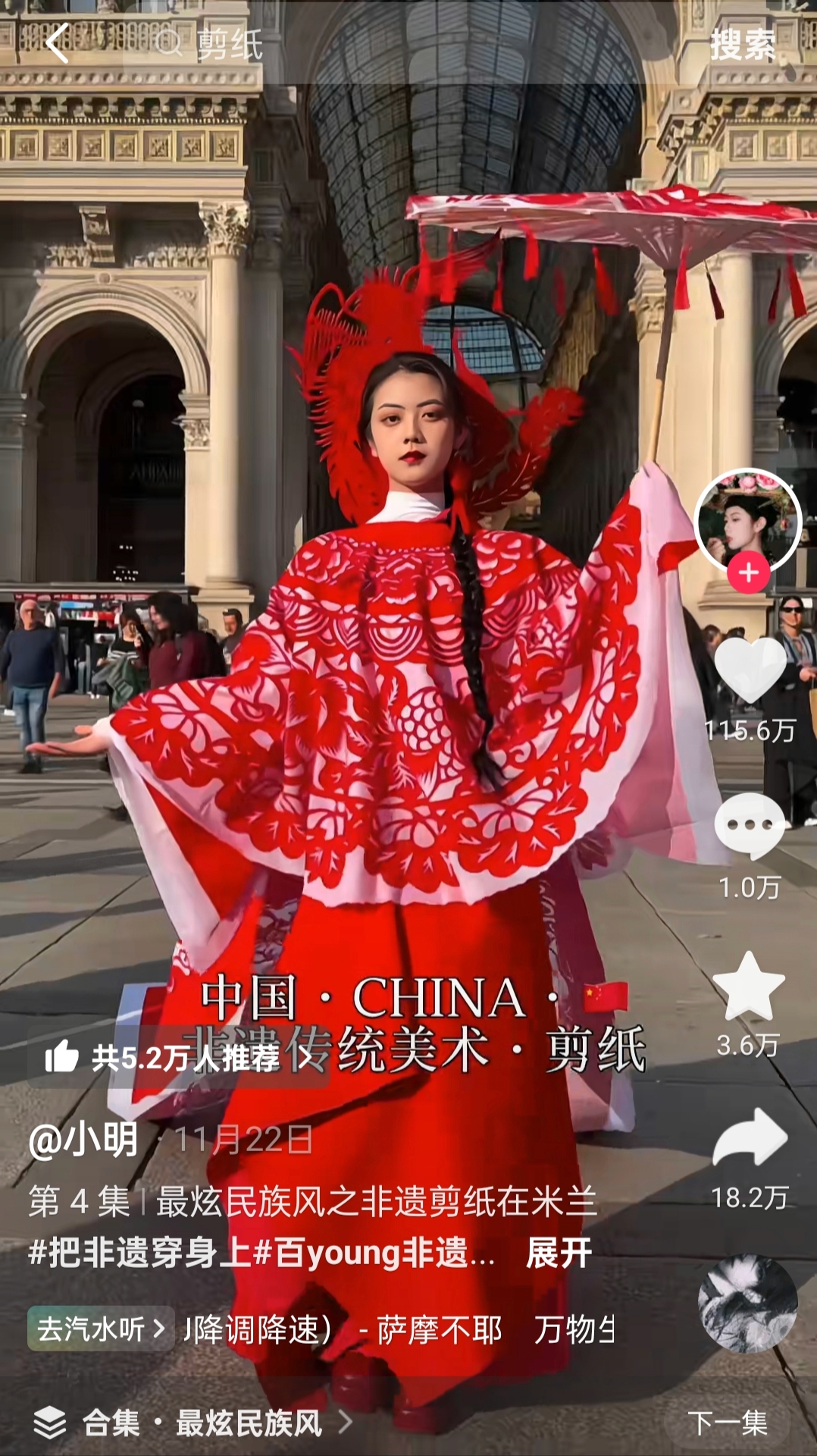 近日,一位文化传承博主身着一身精美绝伦的红色剪纸服装现身意大利米兰街头,瞬间成为众人焦点,外国友人纷纷驻足拍照,相关视频也在网络上迅速走红。这件在米兰街头吸睛无数的剪纸服装,正是衡水滨湖新区悦纳百川剪纸非遗传承人李娜的作品。