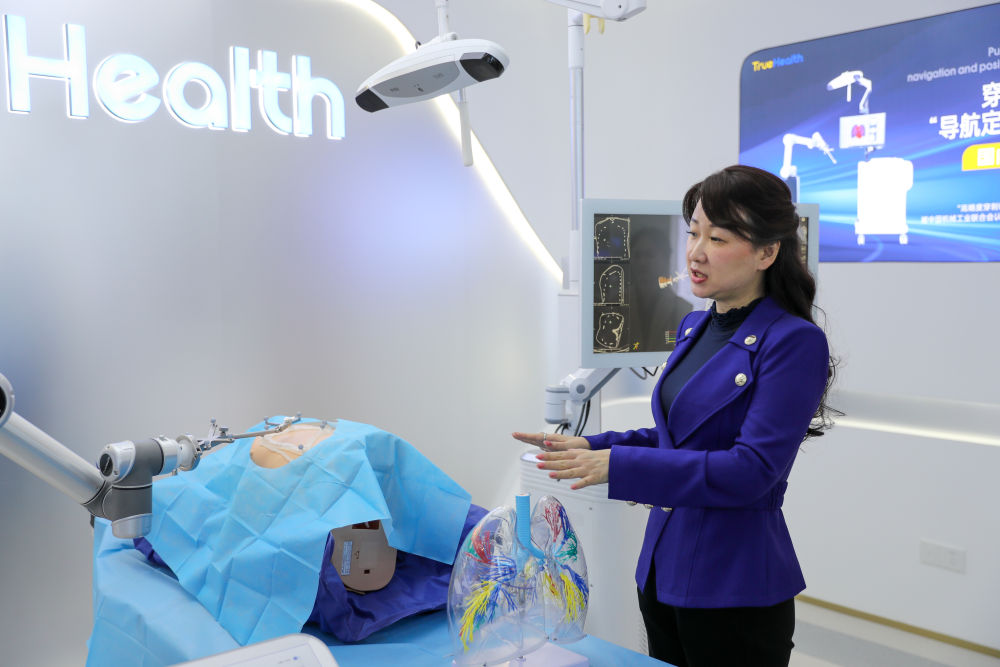 2024年11月24日,在横琴澳门青年创业谷,澳门青年介绍“穿刺手术导航定位系统”。