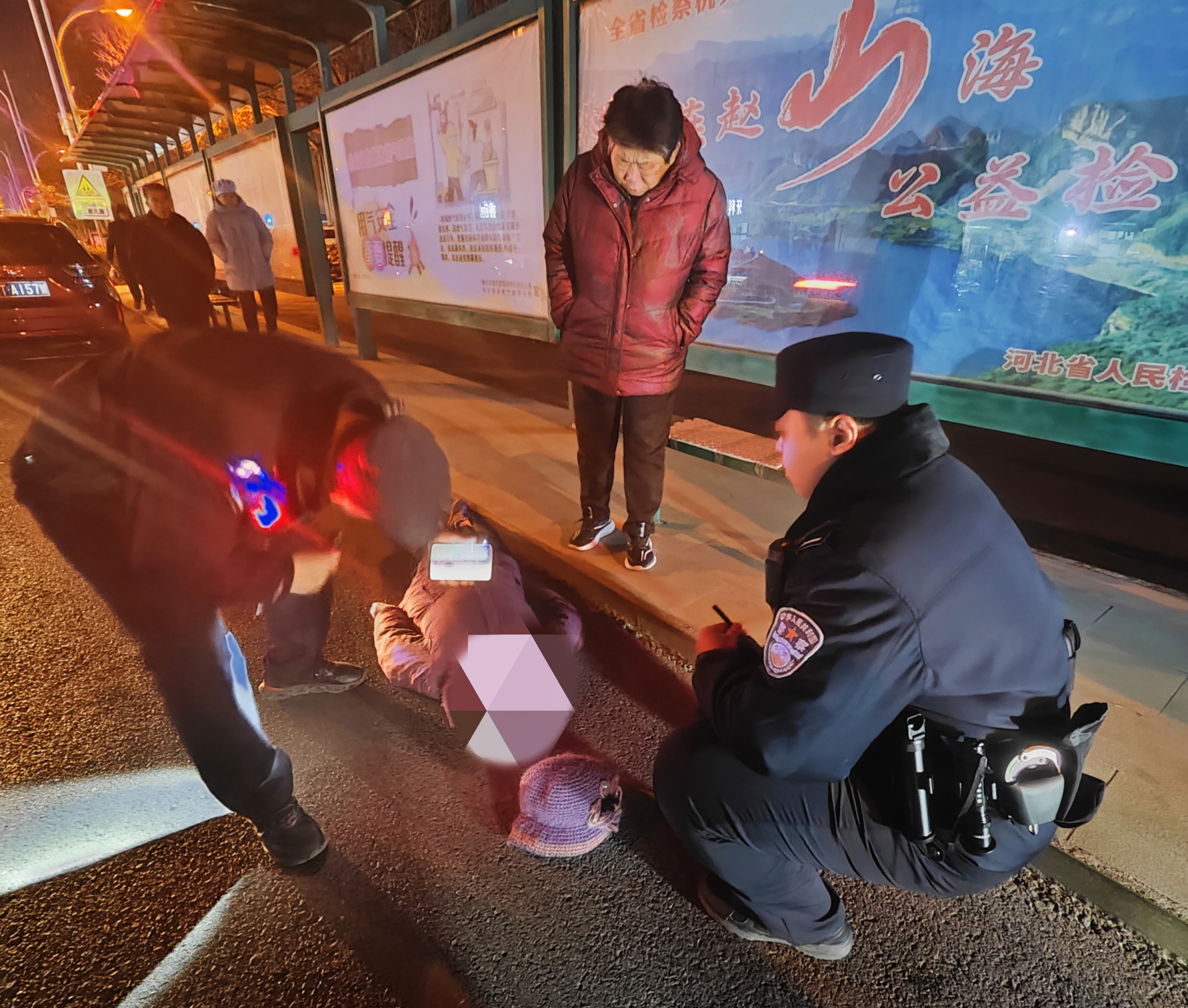 12月16日晚,正逢衡水市桃城区中小学放学,新华路派出所护学岗民辅警接市民求助,迅速前往公交站牌处,对摔倒后无法起身、言语不清的老人展开救援。