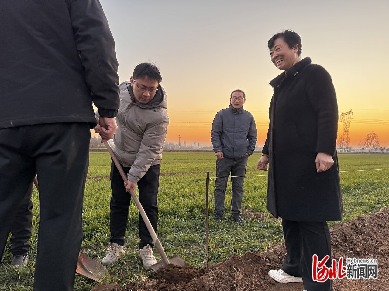 12月3日,南牛镇镇人大代表刘小扣(右一)在木村协调一起耕地纠纷。当事几方当场同意重新划定地界。河北日报记者白云摄