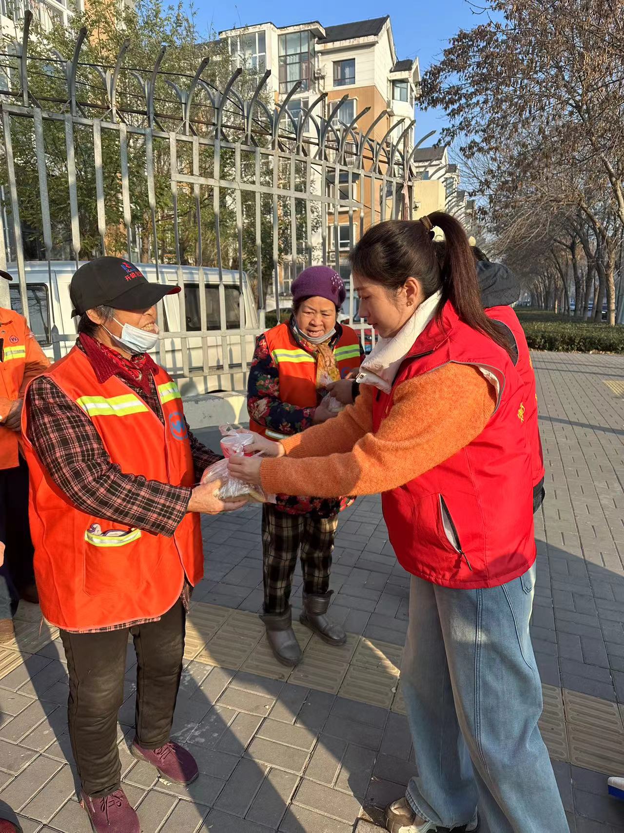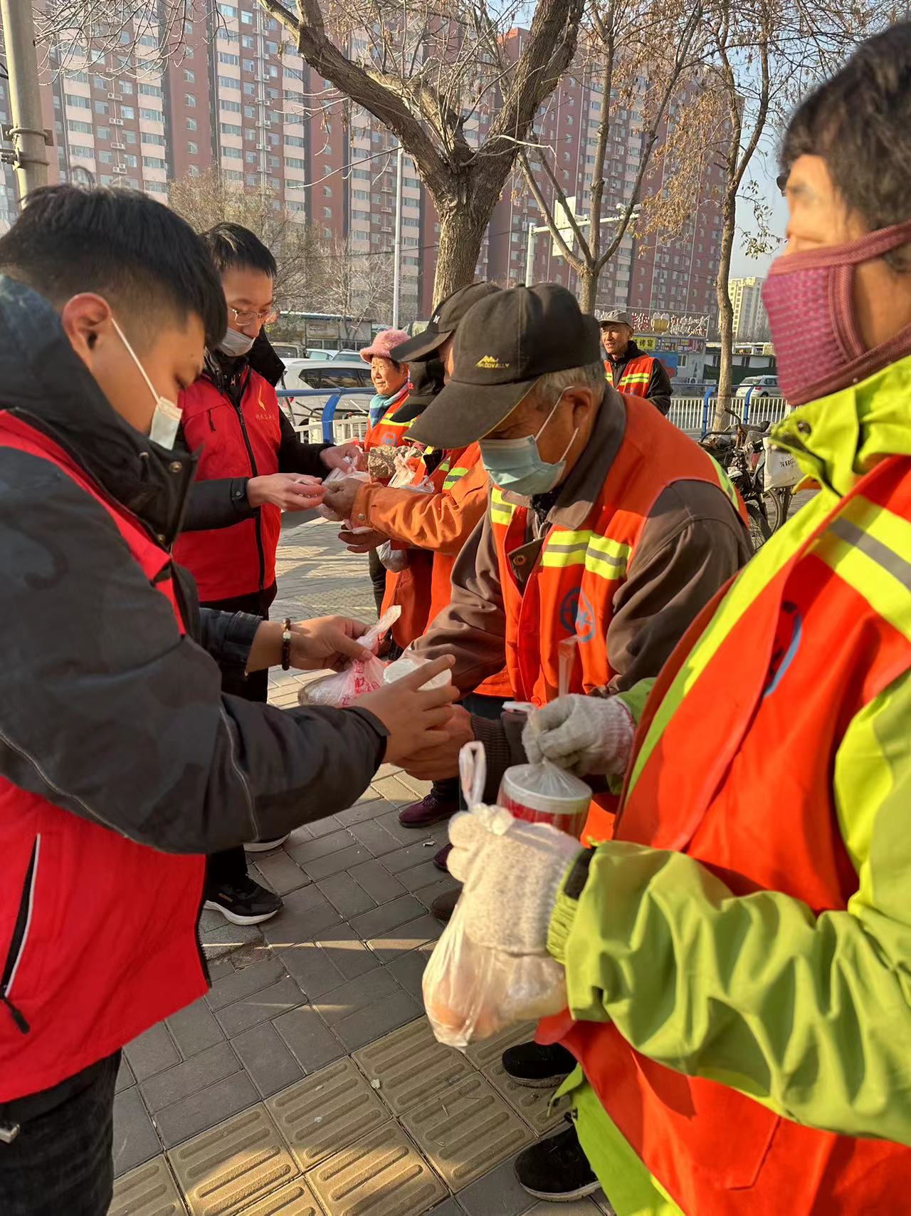 社区工作人员与志愿者们早早来到惠民市场外,将一份份热气腾腾的早餐整齐摆放好。当环卫工人们结束了清晨的清扫工作后,工作人员热情地将早餐递到他们手中,为他们在寒冷的冬日里提供充足的能量与温暖。活动中,社区还联合周边商家设立了“爱心休息站”,为环卫工人提供免费的热饮和歇脚之处,让他们在工作间隙能有温暖的港湾舒缓身心。
