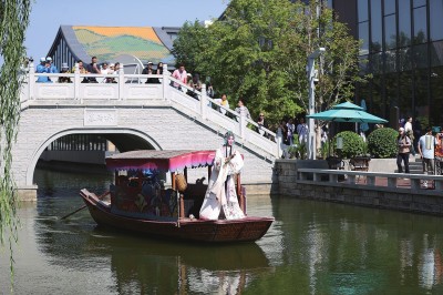从踏入那16道古雅的中式门楼开始,游客仿佛穿越时空,进入了一个充满奇幻与诗意的“红楼梦境”。廊桥、红墙、竹林等充分展现中国传统建筑之美、文化之美、哲学之美。