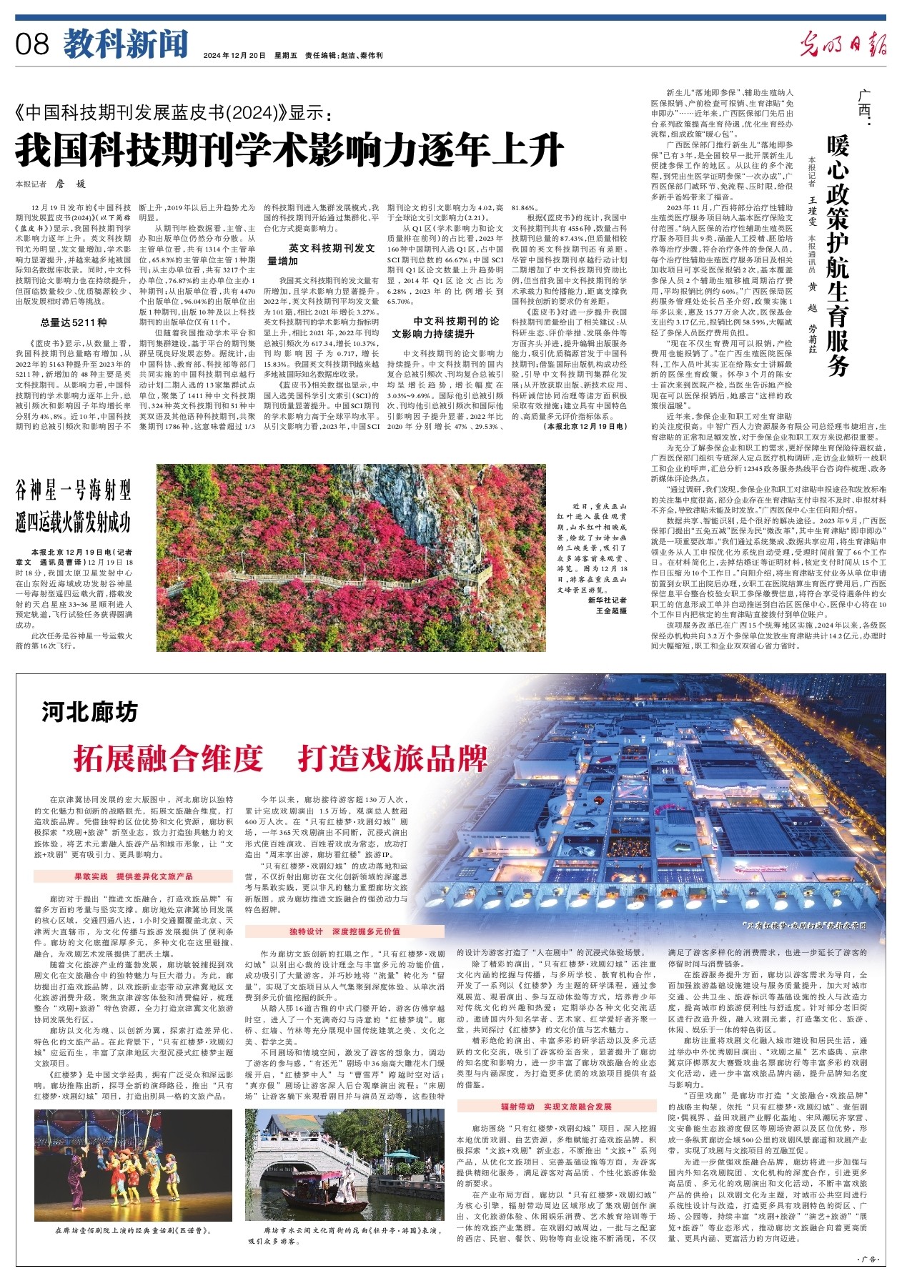廊坊围绕“只有红楼梦·戏剧幻城”项目,深入挖掘本地优质戏剧、曲艺资源,多维赋能打造戏旅品牌。积极探索“文旅+戏剧”新业态,不断推出“文旅+”系列产品,从优化文旅项目、完善基础设施等方面,为游客提供精细化服务,满足游客对高品质、个性化旅游体验的新要求。