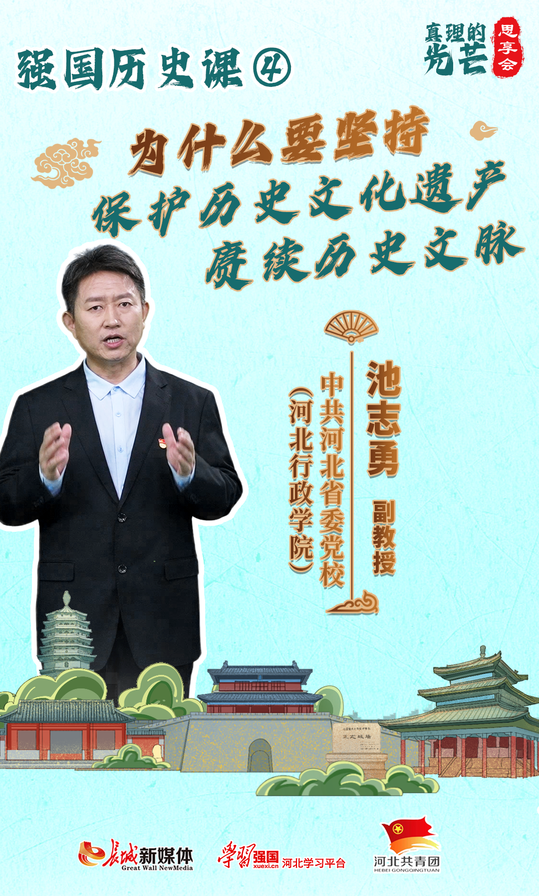 第四期节目由中共河北省委党校(河北行政学院)文史教研部副教授池志勇,讲述“为什么要坚持保护历史文化遗产 赓续历史文脉”。