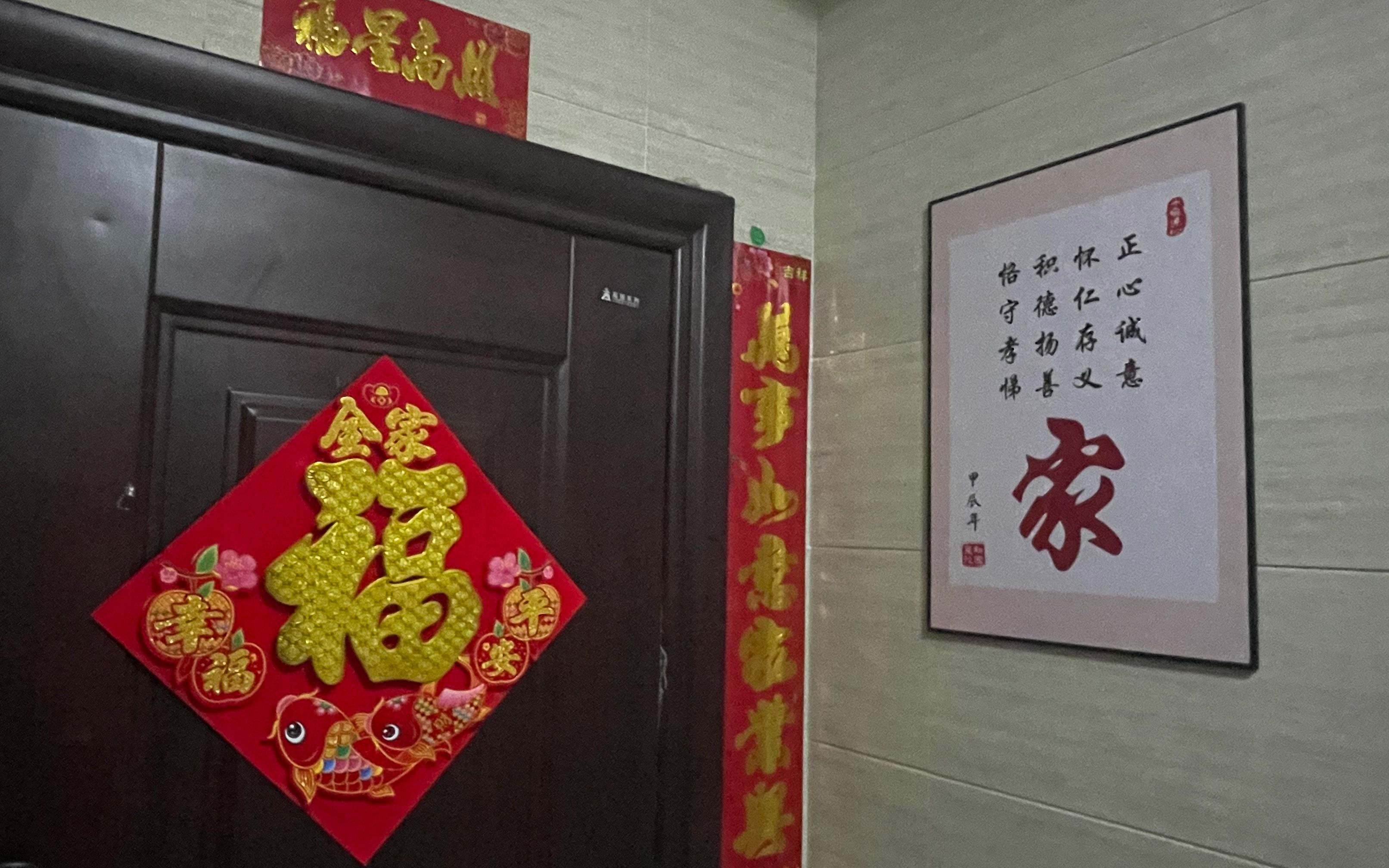 昊和沁园小区居民家门前的家训牌匾。 杜俊颖 摄
