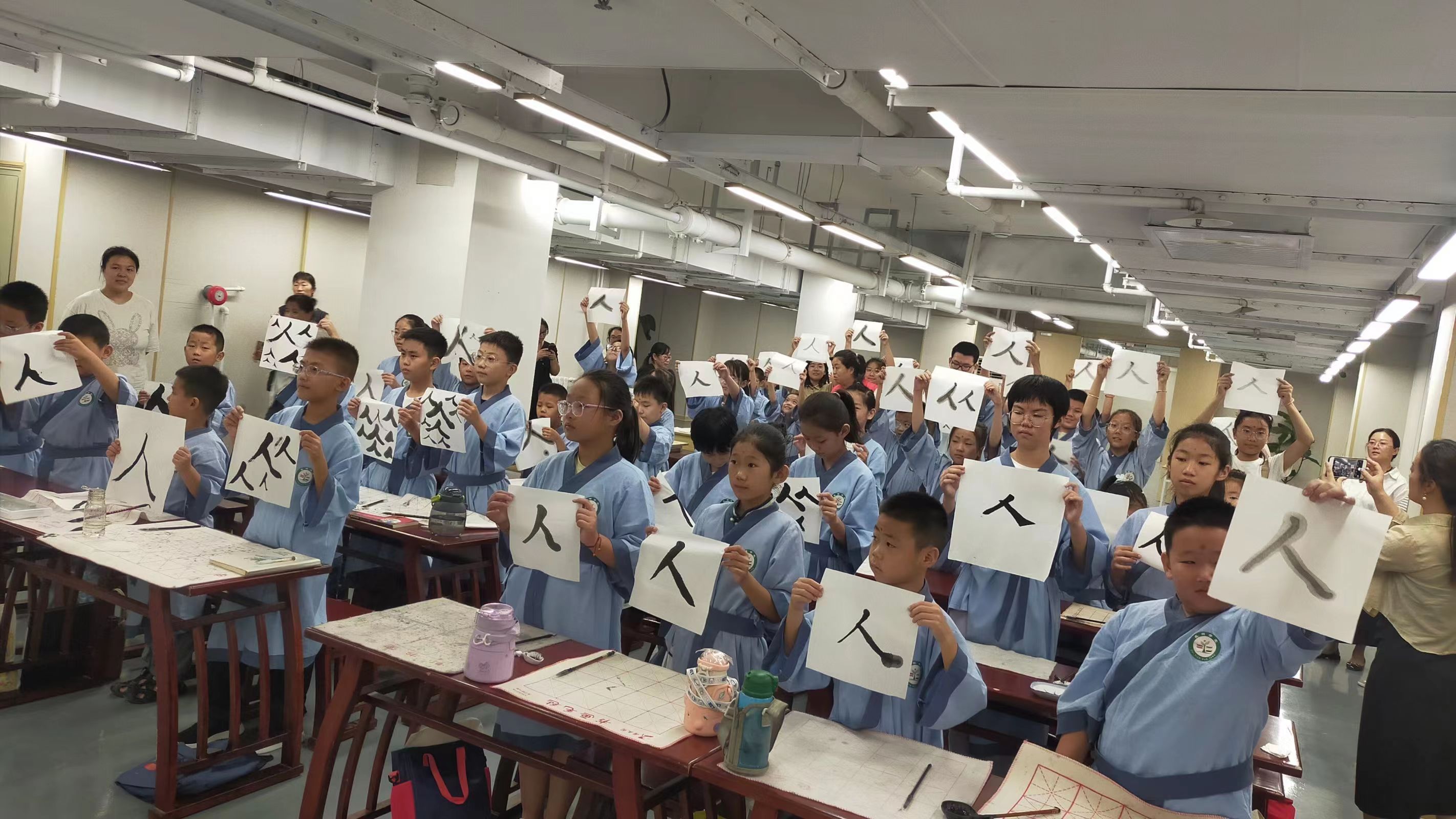 昊和沁园“在田学堂”教室内,孩子们正在参加“开笔礼”。(资料照片)