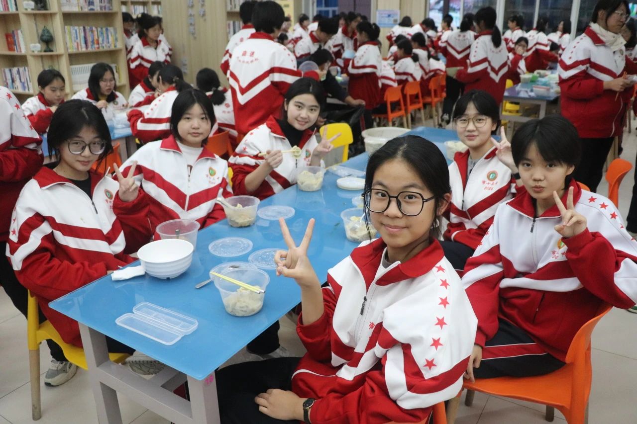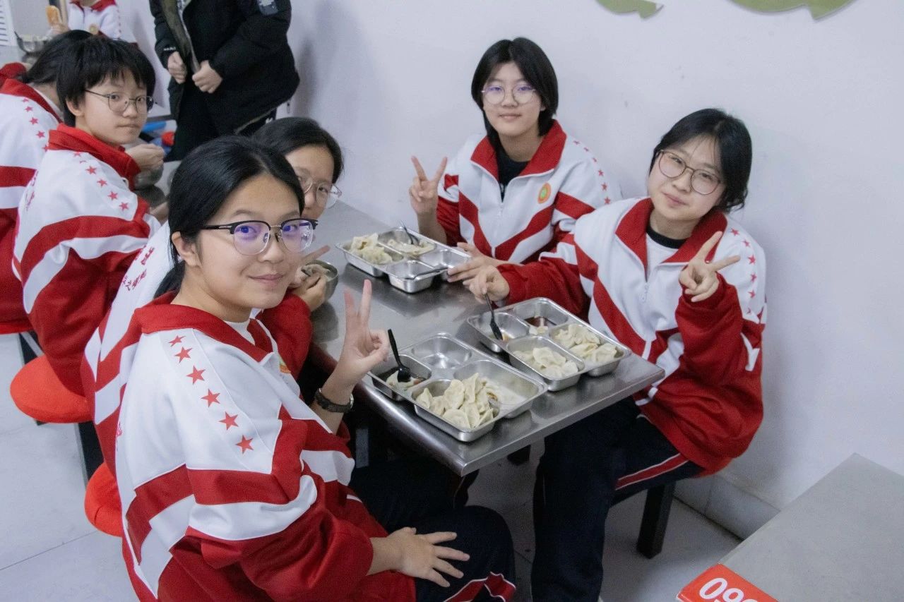 后厨的师傅们早早忙碌起来,洗菜、切肉、和面、擀皮……一道道工序有条不紊地进行着。韭菜鸡蛋馅寓意着长久与团圆,猪肉大葱馅则寓意着富足与美满。一个个圆鼓鼓的饺子里包裹的是满满的祝福,愿同学们在冬日远离寒冷侵袭,顺遂安康。