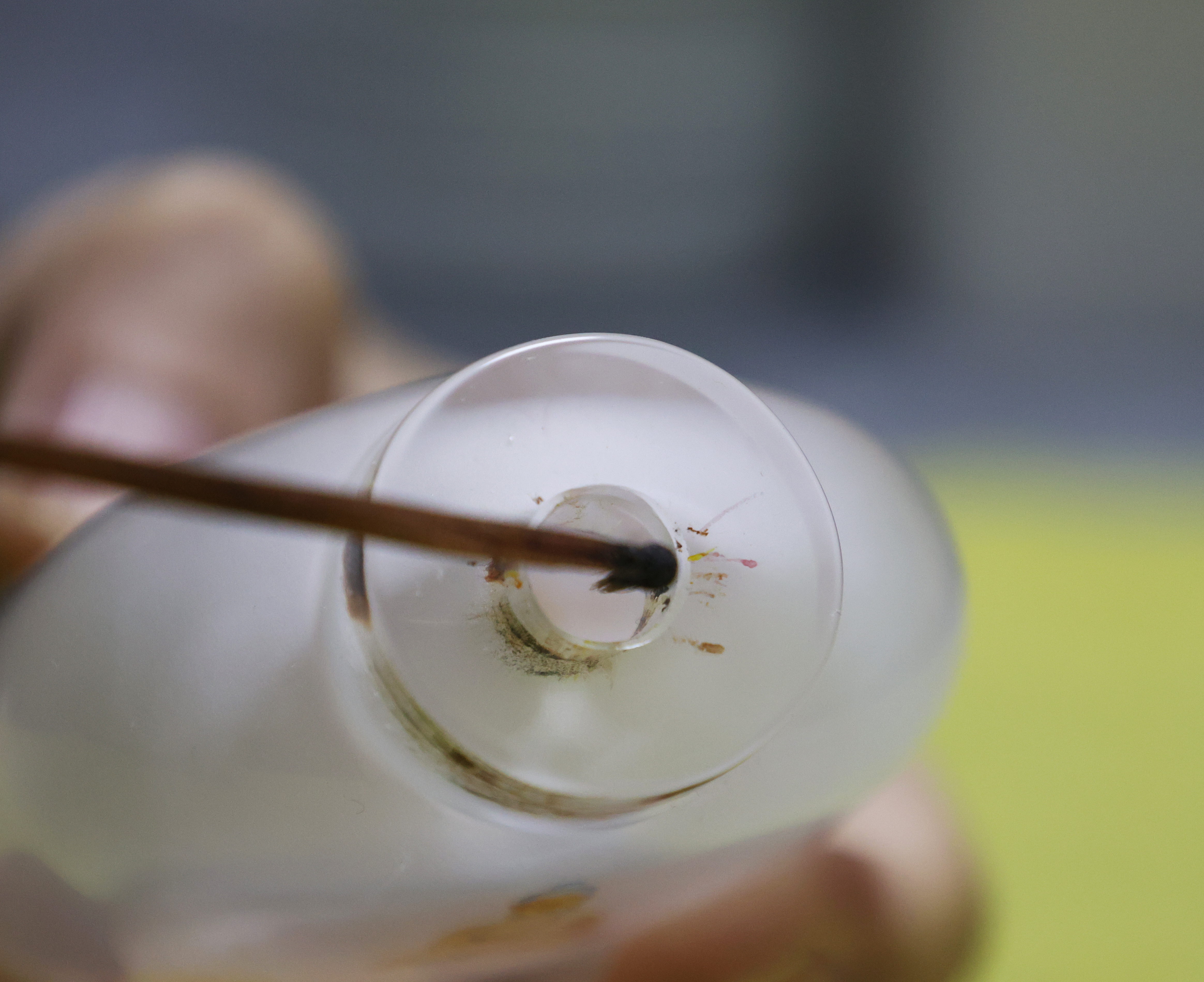 “内画的特别之处就是要用工具把画描绘在瓶子内部,首先作画顺序相反,内壁反着书画,外壁才能是正顺序。其次,壶口很小,铜制的纤细的笔杆顶端是与笔杆成九十度的笔尖,作画时,笔杆整个伸进壶口,笔尖与壶壁要垂直勾画。”粘跃峰一边工作一边给记者介绍,衡水内画把国画的皴、擦、染、点、勾、撕等技法引入内画,立意深邃,构图严谨,线描技法丰富,设色协调精润,书画并茂,雅俗共赏。在粘跃峰的指引下,记者了解了内画的制作工艺流程,亲眼目睹了内画艺术家们是如何在小小的鼻烟壶内创造出如此精美的作品。