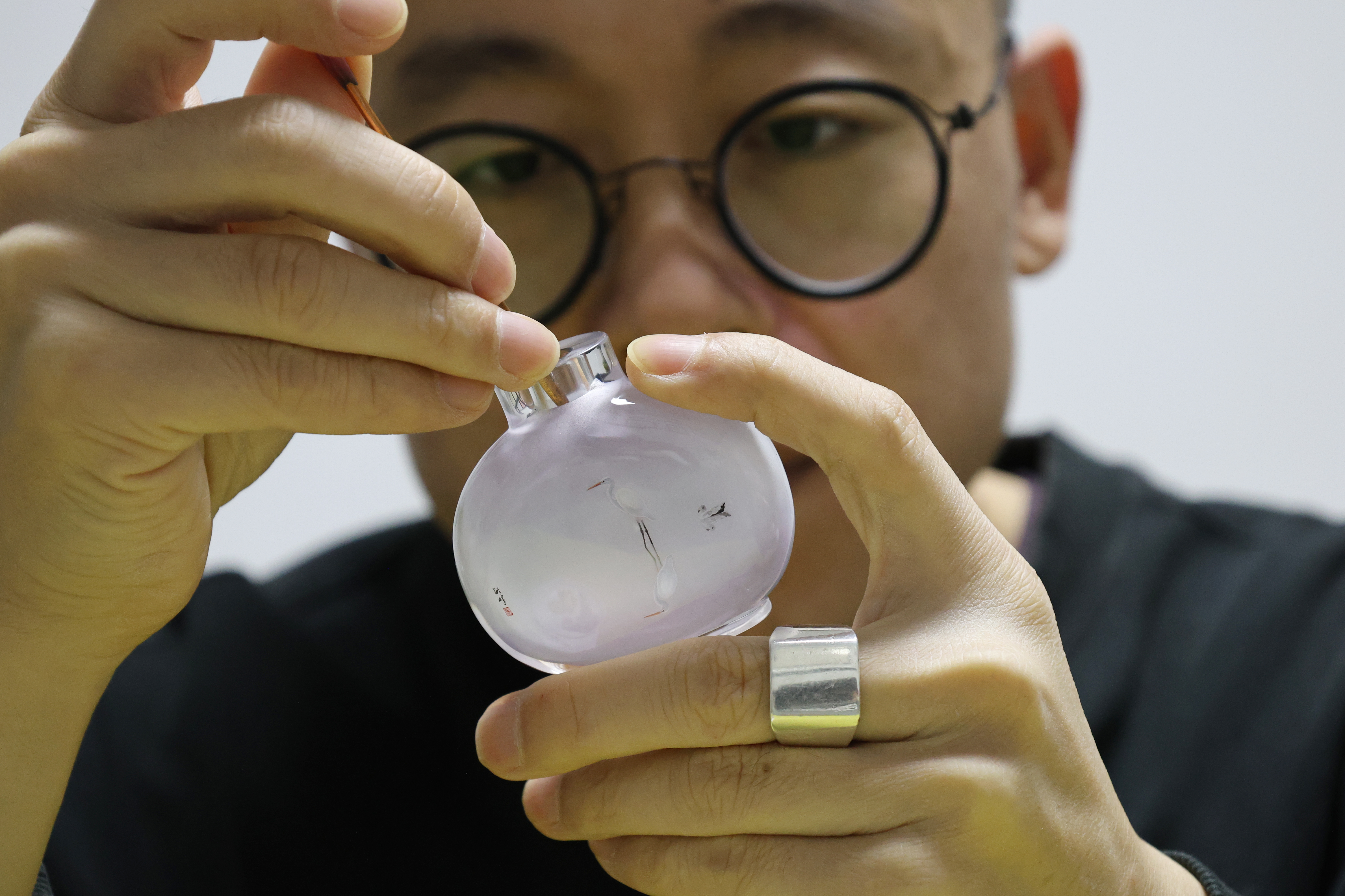 在一方寸余大小的鼻烟壶内,勾勒出万千气象,这便是内画鼻烟壶的独特魅力。近日,冀派内画第三代传承人粘跃峰荣获第五届河北省工艺美术大师称号。记者走进他的内画艺术工作室,亲身体验这一传统艺术的精妙绝伦。