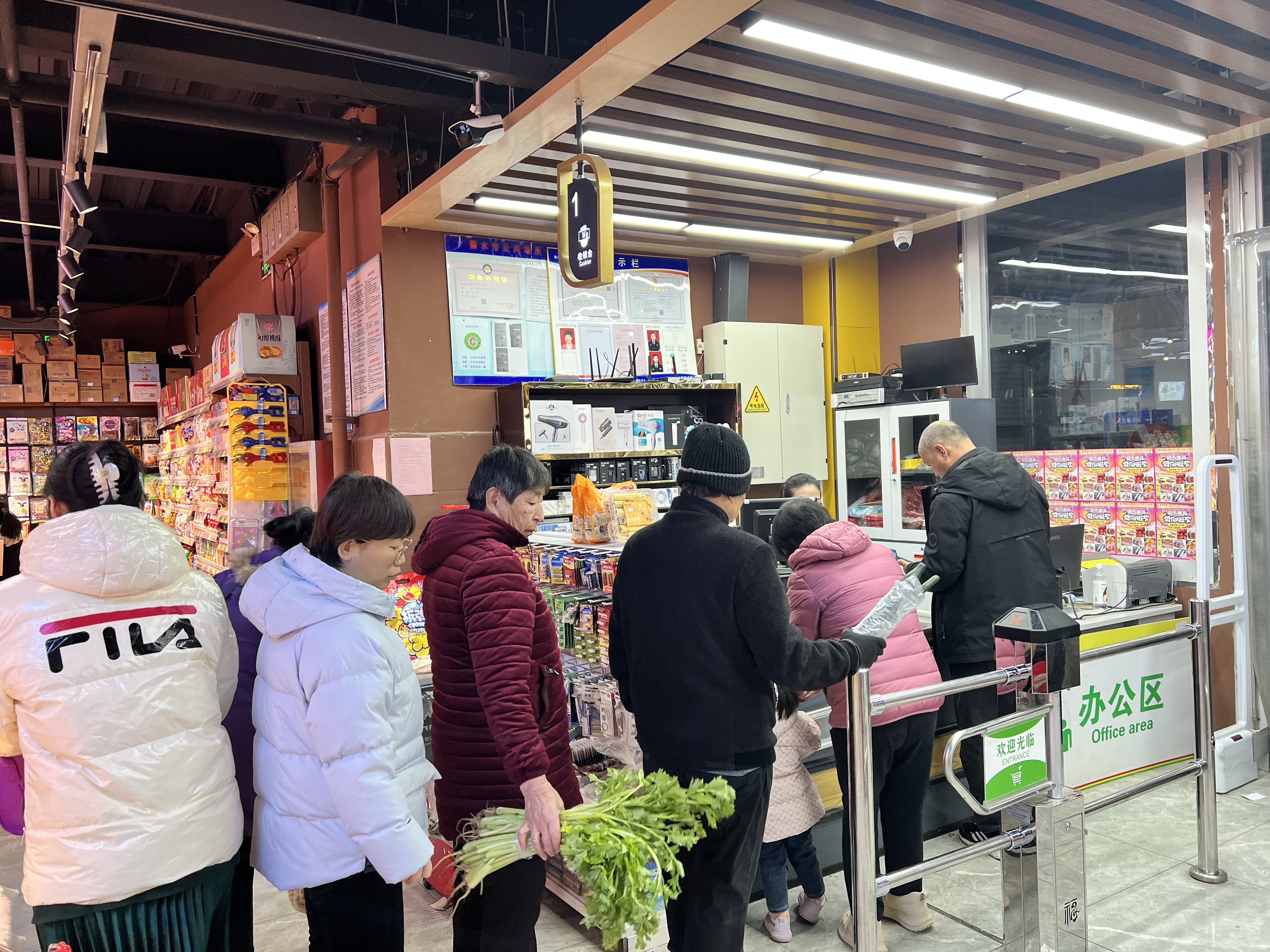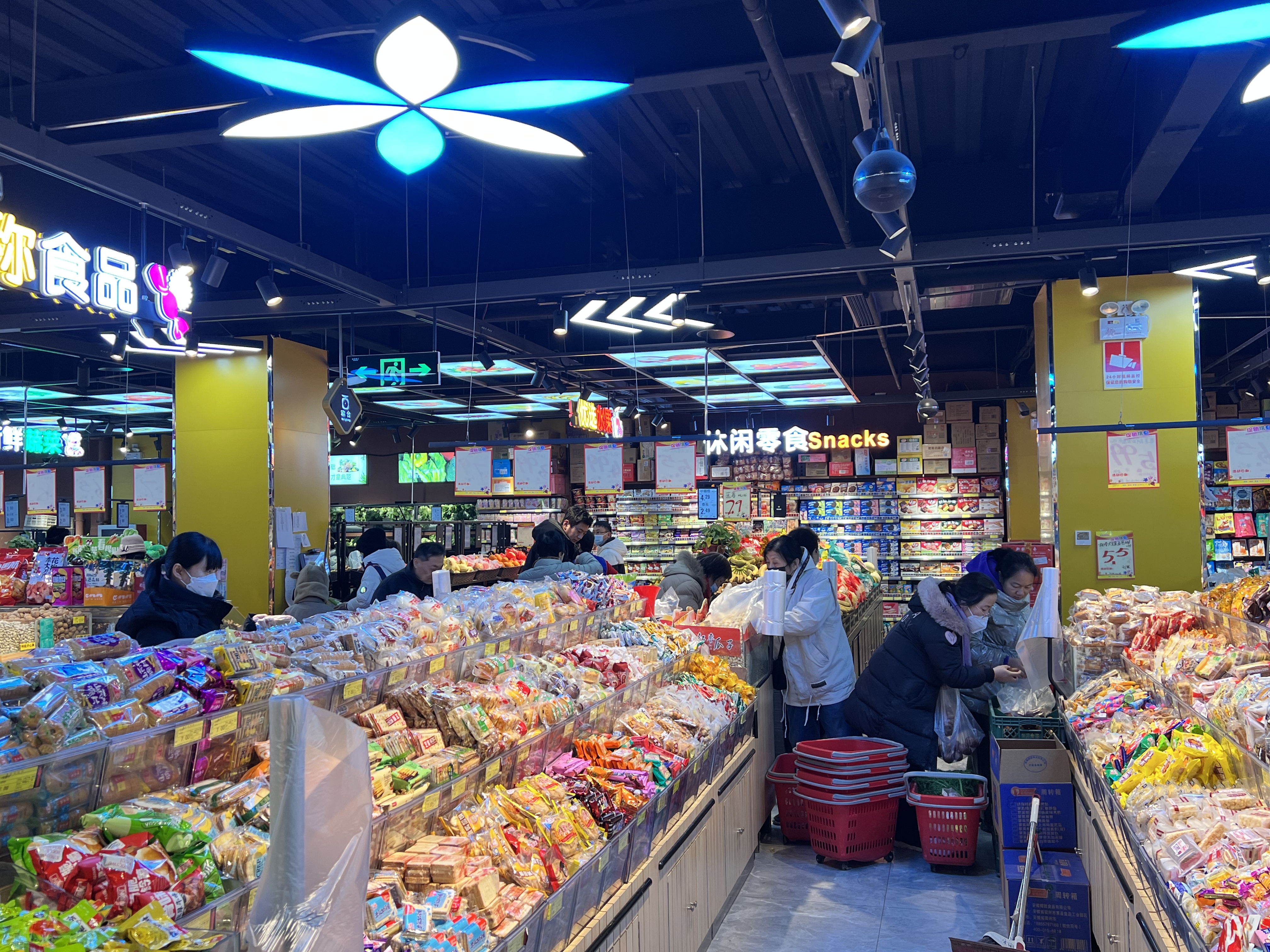1月16日,记者来到市区报社街附近的一家超市,超市里人头攒动,广播里播放着欢乐喜庆的音乐,市民们正在挑选商品。记者注意到,超市里坚果、蜜饯、酒水、糖果等节日食品已经开始了促销活动,吸引了不少消费者前来购买。肉类、米、面、油等商品区域也聚集着不少消费者。“下周就跨年了,准备买点肉回家灌香肠,今天这猪肉不错,打算多买点呢。”正在挑选猪肉的市民陈女士说。