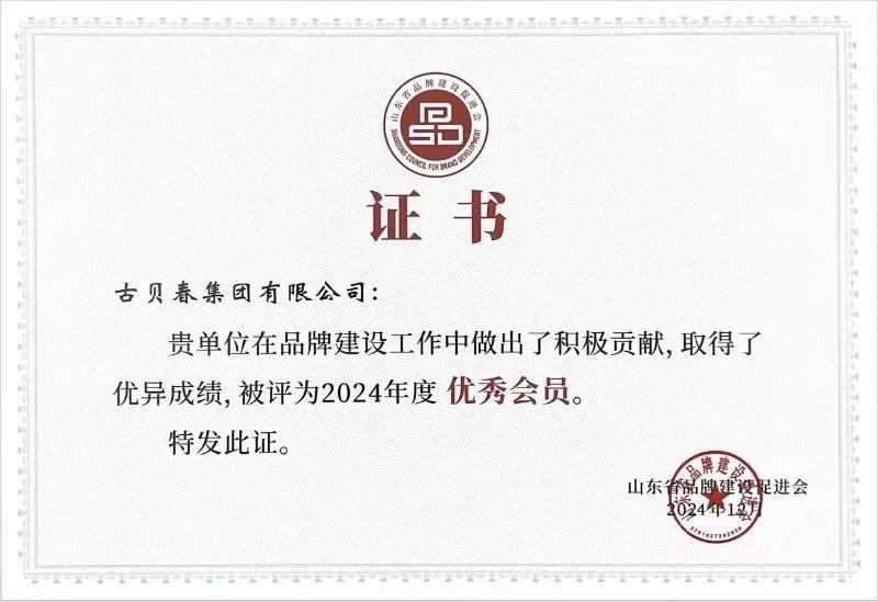 19日,“2024山东品牌年会暨ESG建设与品牌价值提升论坛”在济南举办,古贝春集团被授予“2024年度优秀会员”单位。精心策划并实施的“以品质与诚信擦亮中华老字号金牌”案例成功入选“品牌建设优秀案例”。