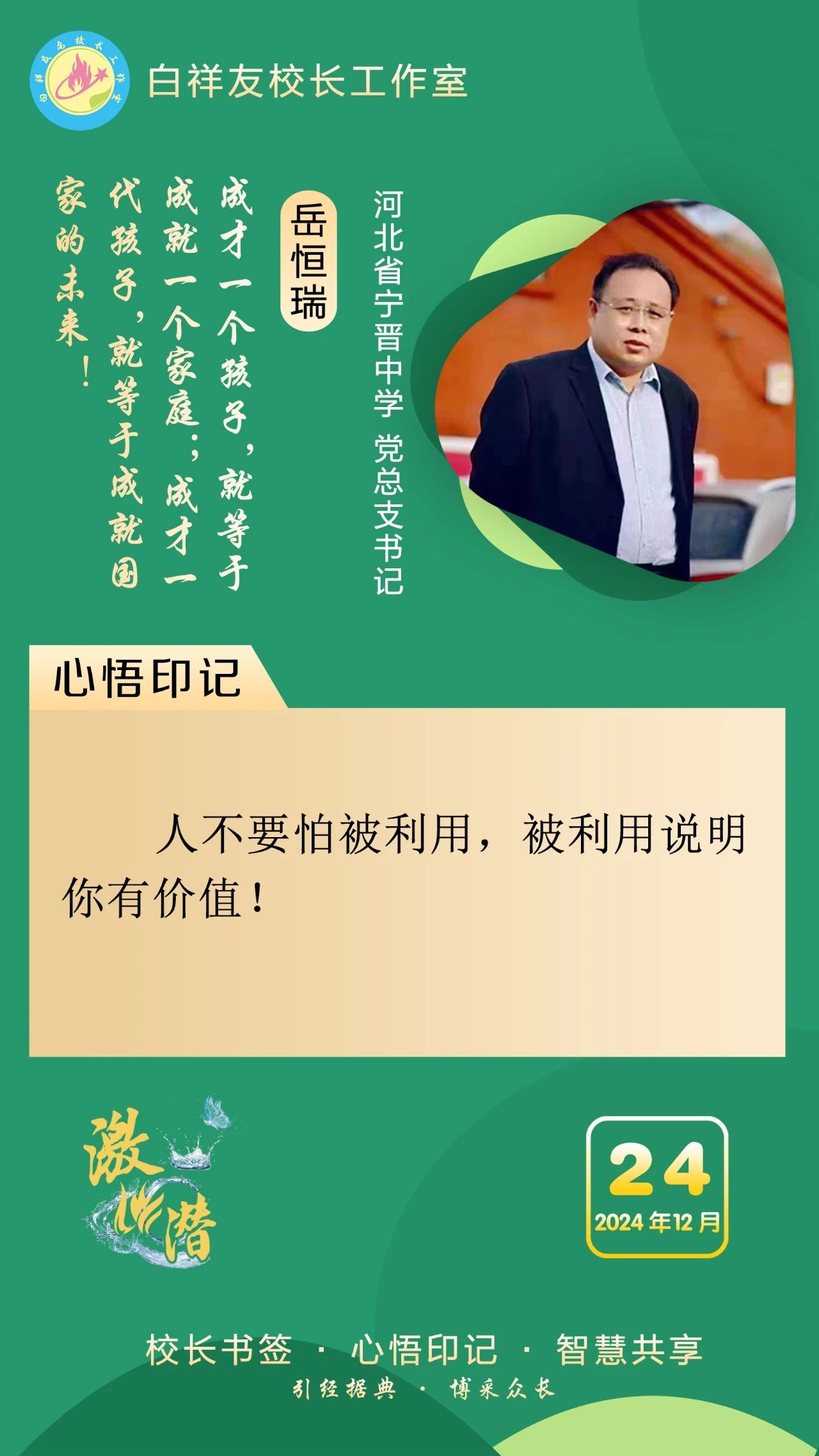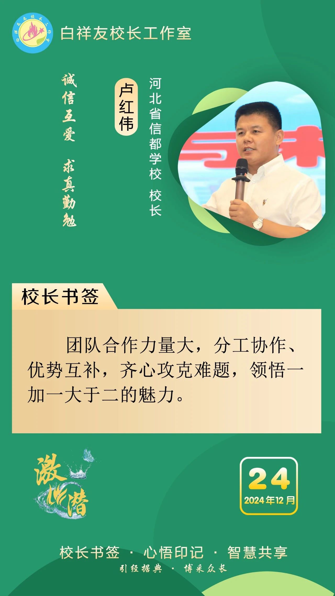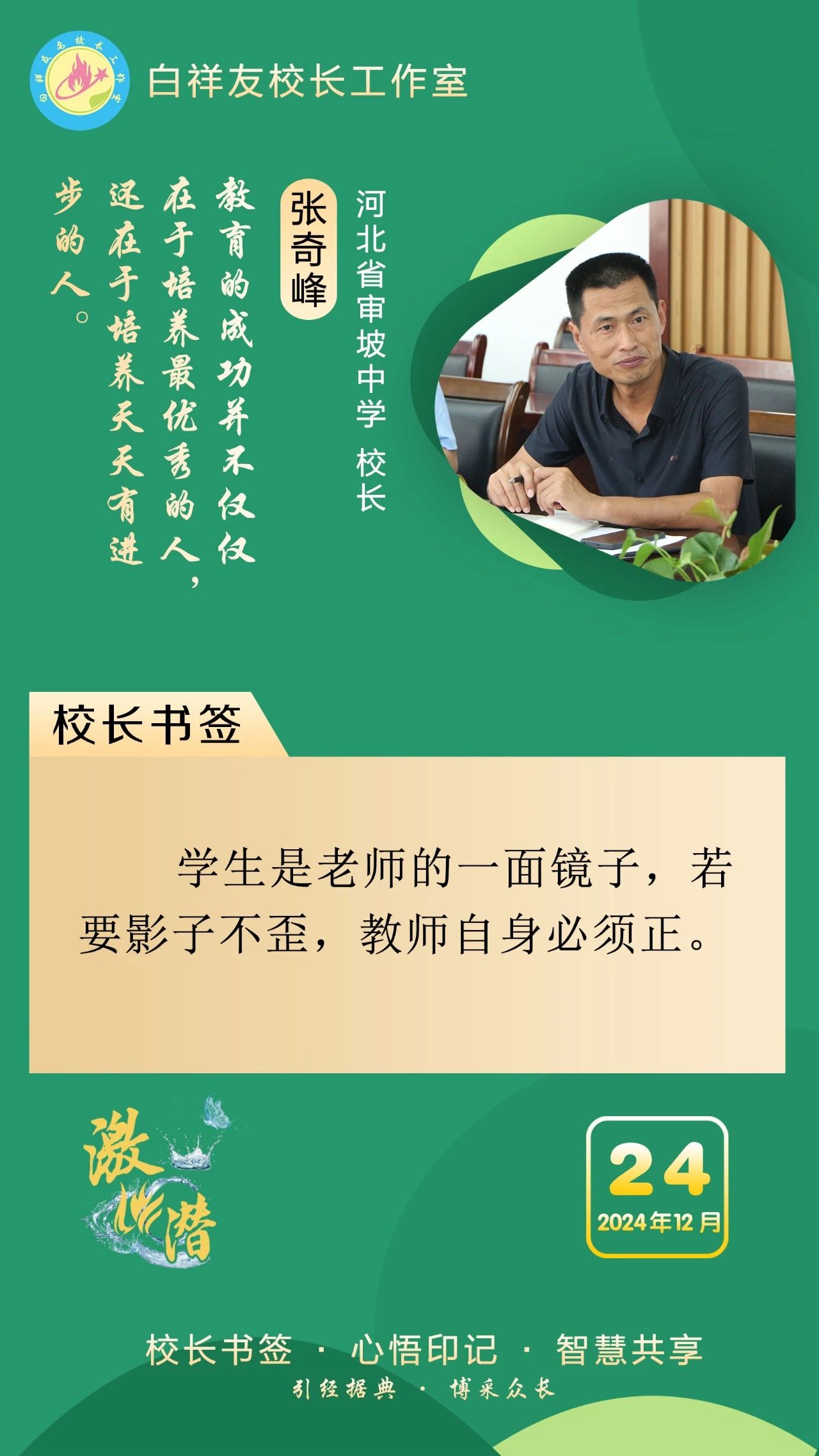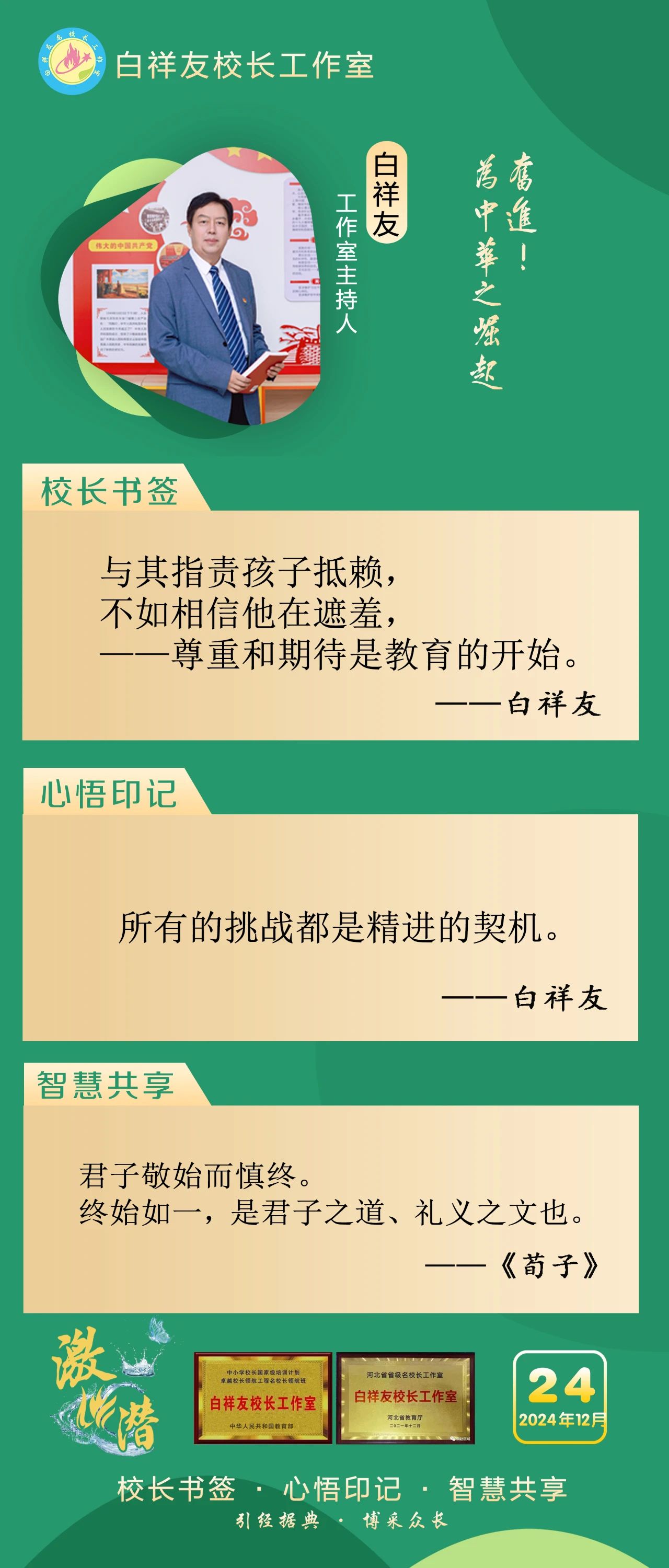 “白祥友校长工作室”成立于2019年4月,是教育部“国培计划”中小学名校长领航工程、河北省首批名校长工作室,目前省内外成员校48个。工作室坚持“资源共享、智慧共融、互助共赢”理念,已成为思想碰撞的交流场,资源共享的品牌站,成果展示的辐射源。