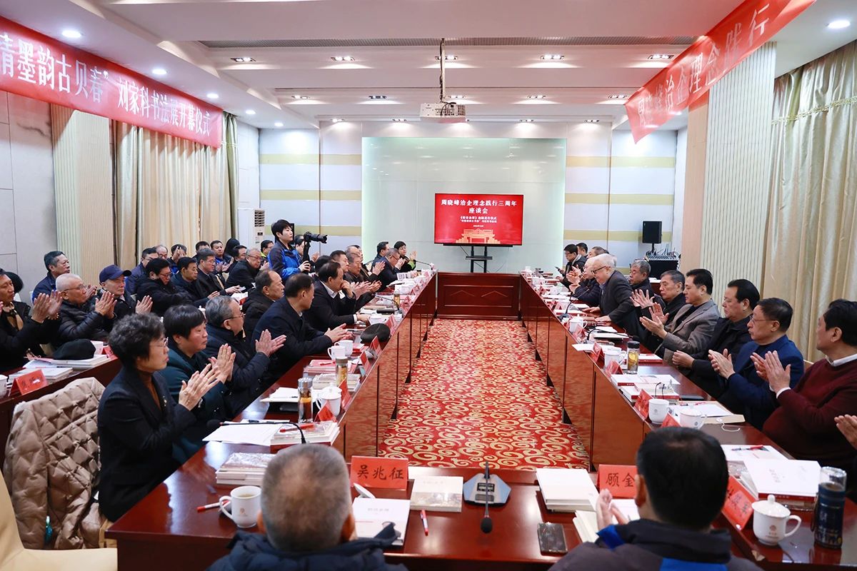 座谈会上,刘家科在回顾与周晓峰交往经历的同时,作了“诗情墨韵古贝春”书法展的开展致辞。与会人员兴致勃勃进行了观展。作为“致敬古贝春,缅怀周晓峰”的潜心之作,座谈会上同步开展的本次主题书法展是刘家科先生近三十多年来陆续创作的“古贝春与周晓峰”为主题内容的文学书法作品,内容多为作者自创,诗、词、曲、赋、谣体裁多样,文韵书风俱佳。其时间跨度之大,表现形式之丰,审美情趣之真,深得各界人士好评。
