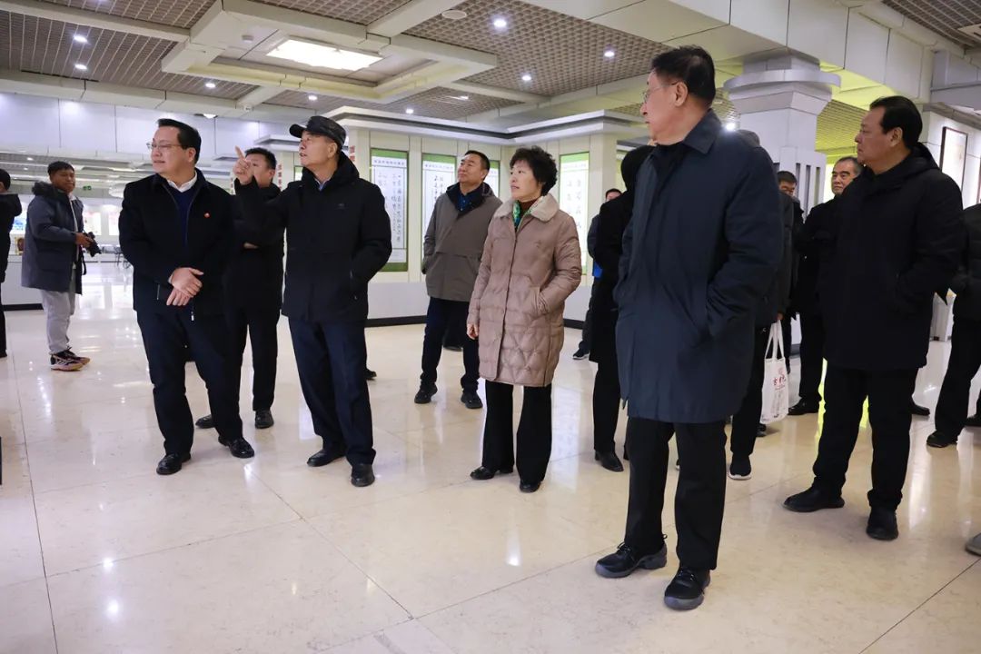 ▲与会领导参观“诗情墨韵古贝春”书法展