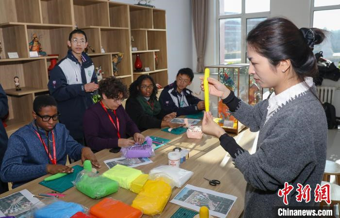 图为12月27日,美国青少年交流团在河北衡水中学面塑社团制作面塑。 陈康 摄