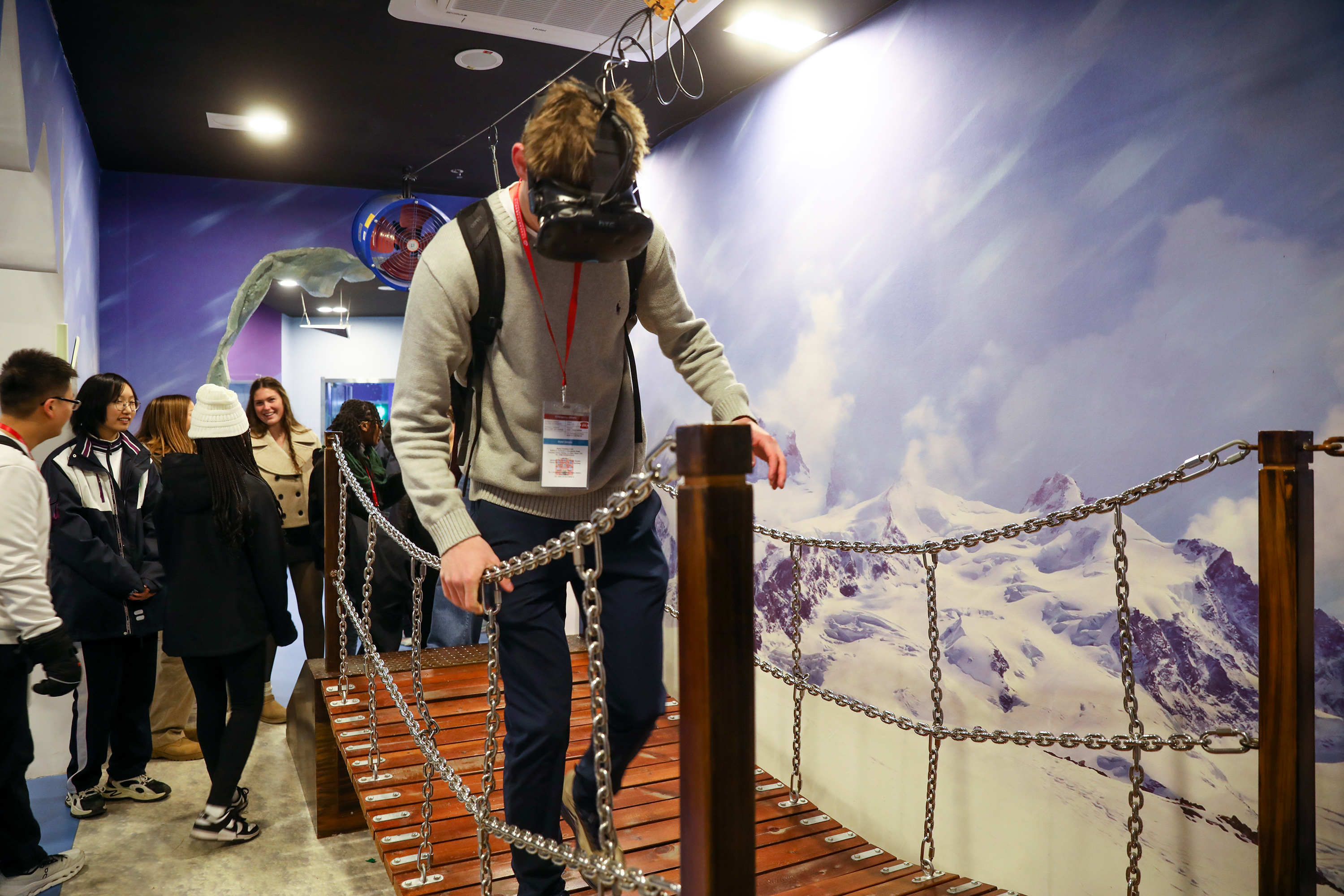 12月27日,来自美国得克萨斯州圣史蒂芬圣公会学校的Charles Channing Dugan在河北衡水中学学生发展中心参观体验。