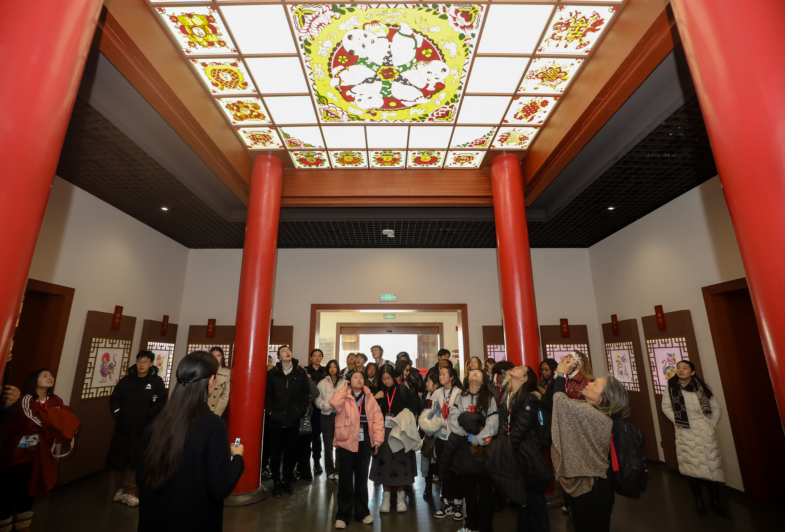 12月27日,美国青少年交流团学生在武强年画博物馆参观。