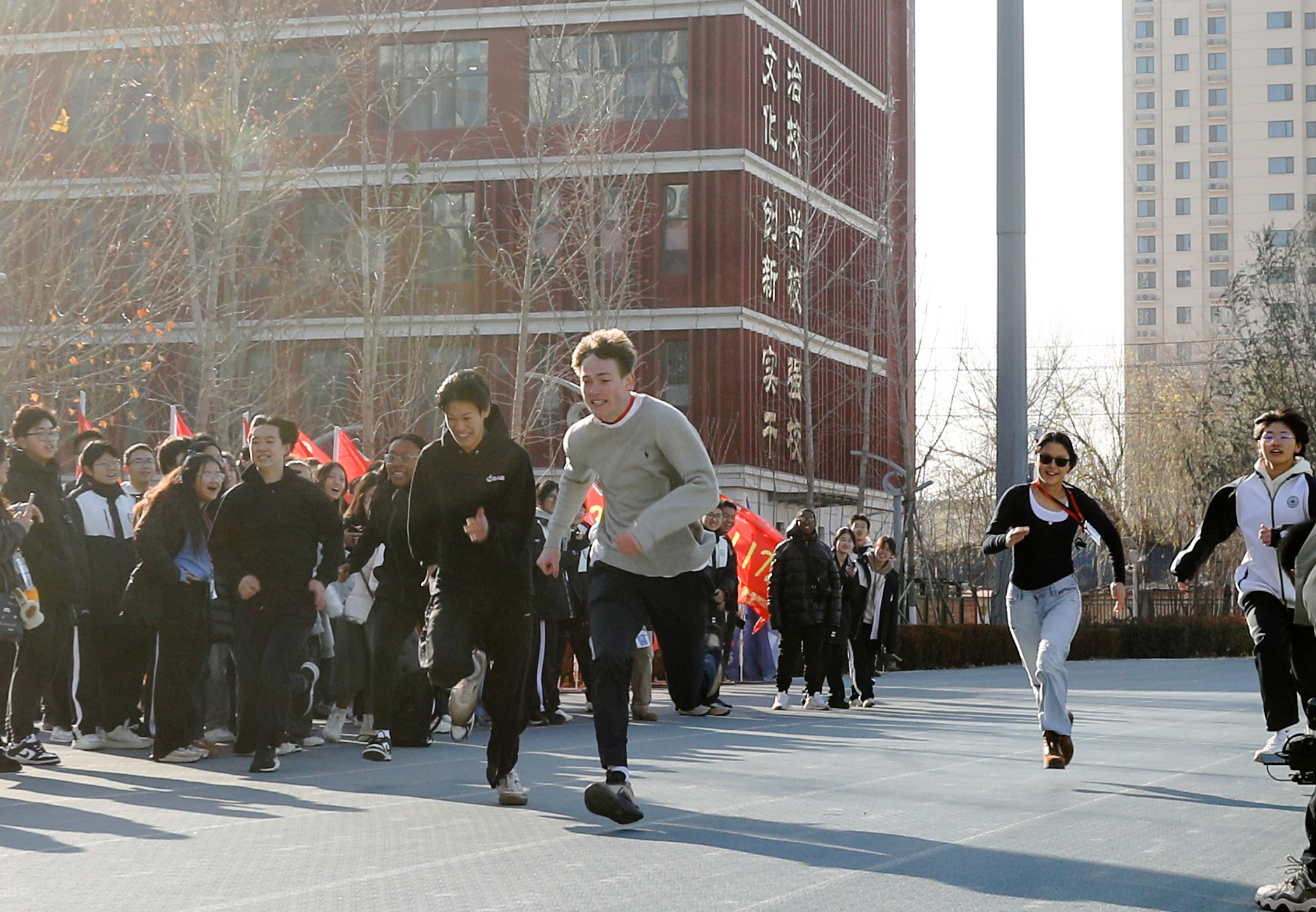 12月27日,美国青少年交流团学生与河北衡水中学学生进行短跑比赛。