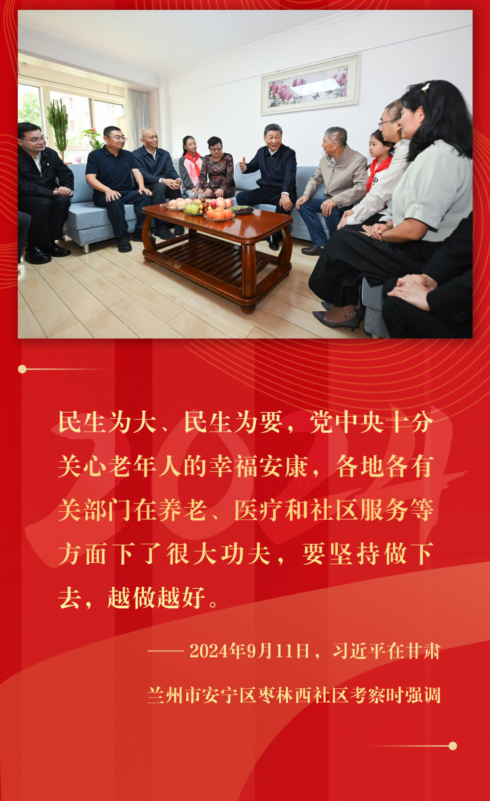 悠悠民生事,枝叶总关情。2024年,总书记考察步履不停,时刻记挂群众冷暖:灾区灾后重建工作、老旧小区改造、解决“急难愁盼”、服务“一老一小”……人民至上的理念和行动,温暖着百姓的心。