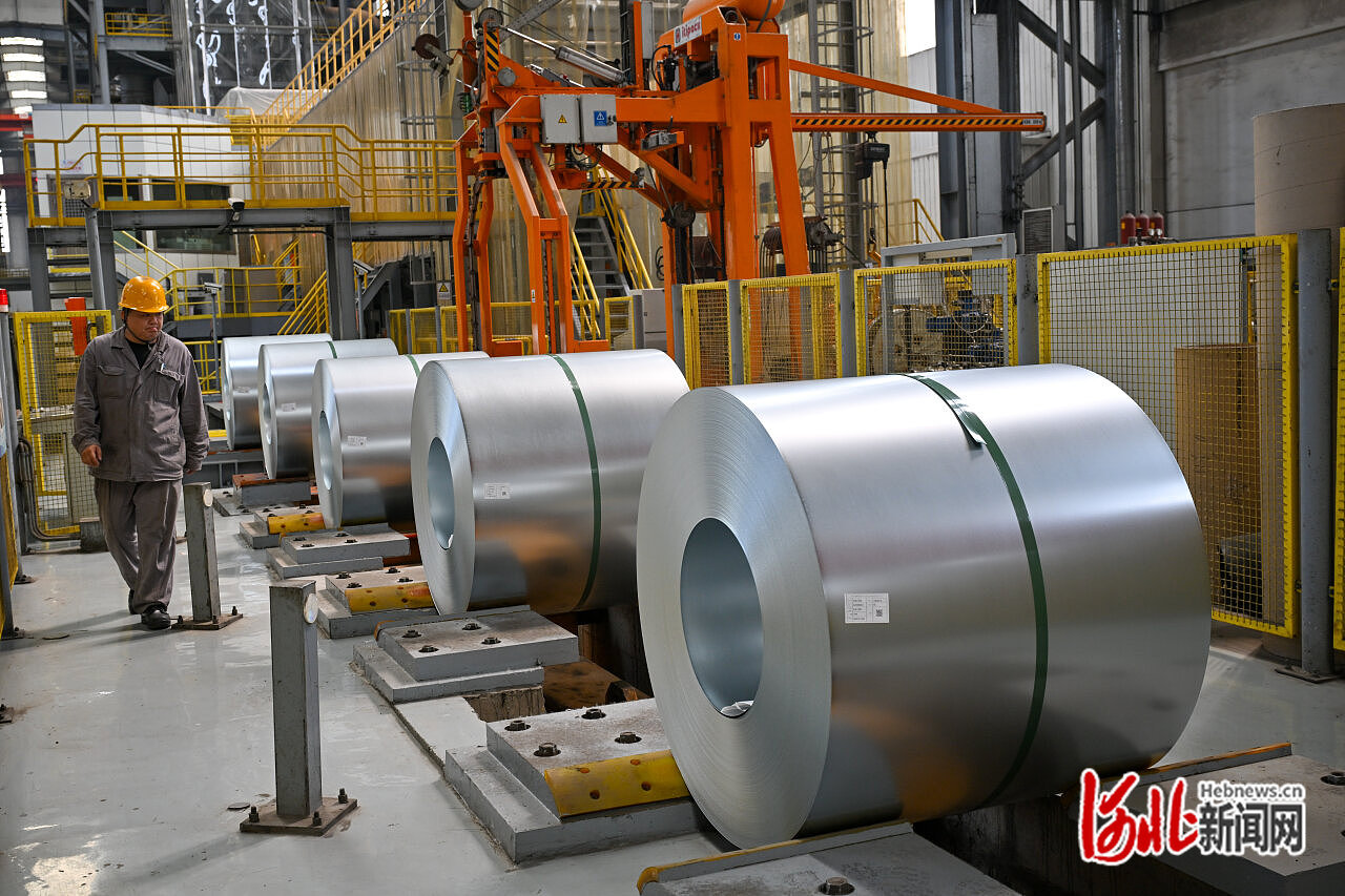 河钢集团唐钢公司员工查看高强汽车板生产线。(资料片) 河北日报记者 赵杰摄