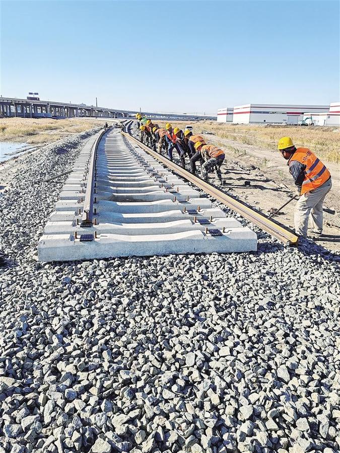 前天上午,走进黄骅港综合物流园区铁路专用线渤海新区站改造项目施工现场,机器轰鸣,施工人员分布在各个作业区域,紧密配合,现场一派繁忙景象。