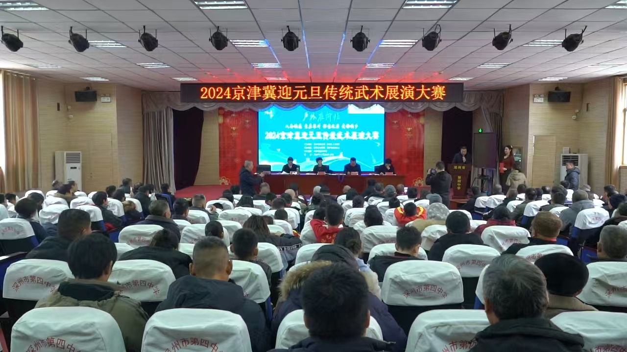 12月29日,“大美湖城”衡水体育休闲嘉年华暨2024京津冀迎元旦传统武术展演大赛在深州市第四中学武术馆举行。