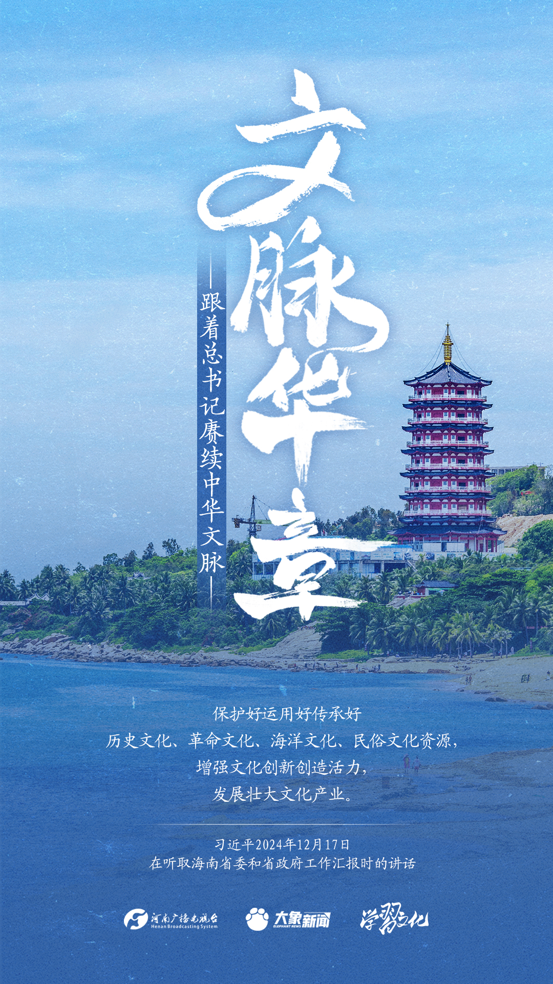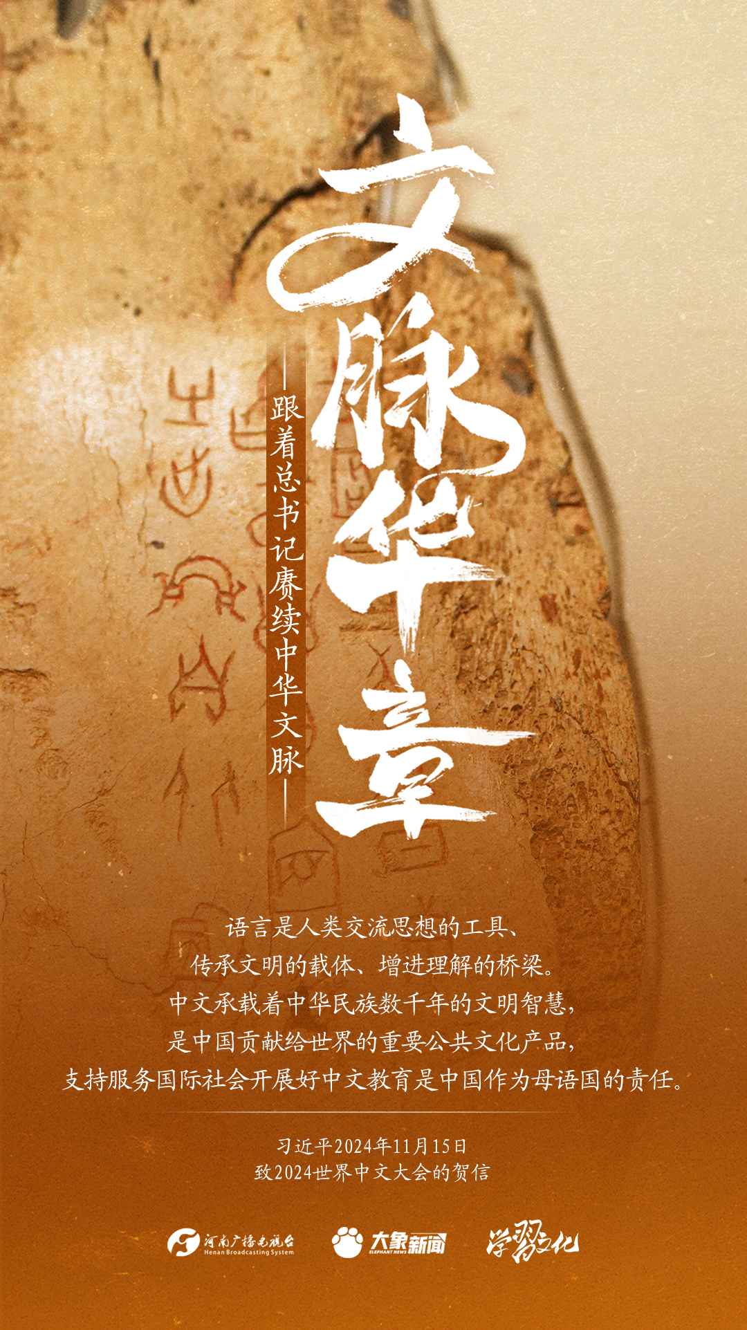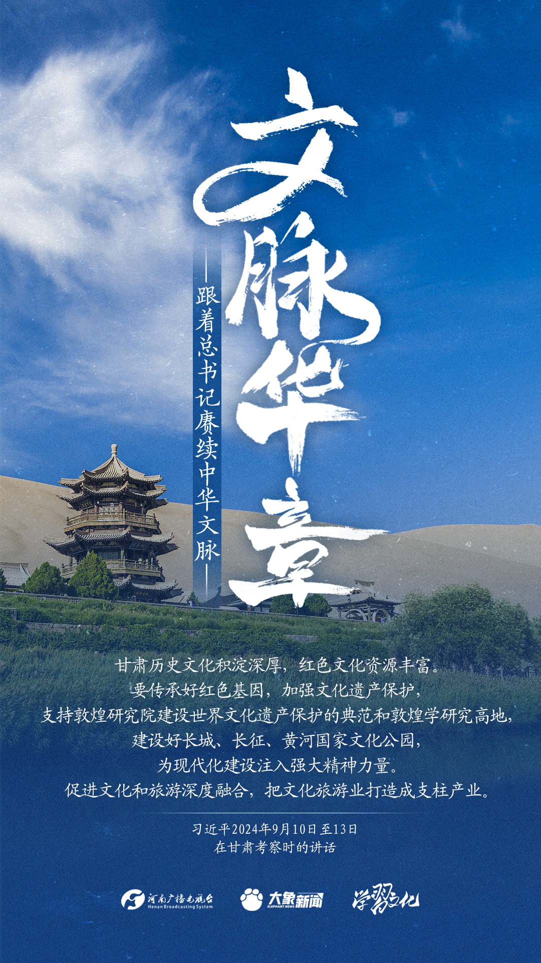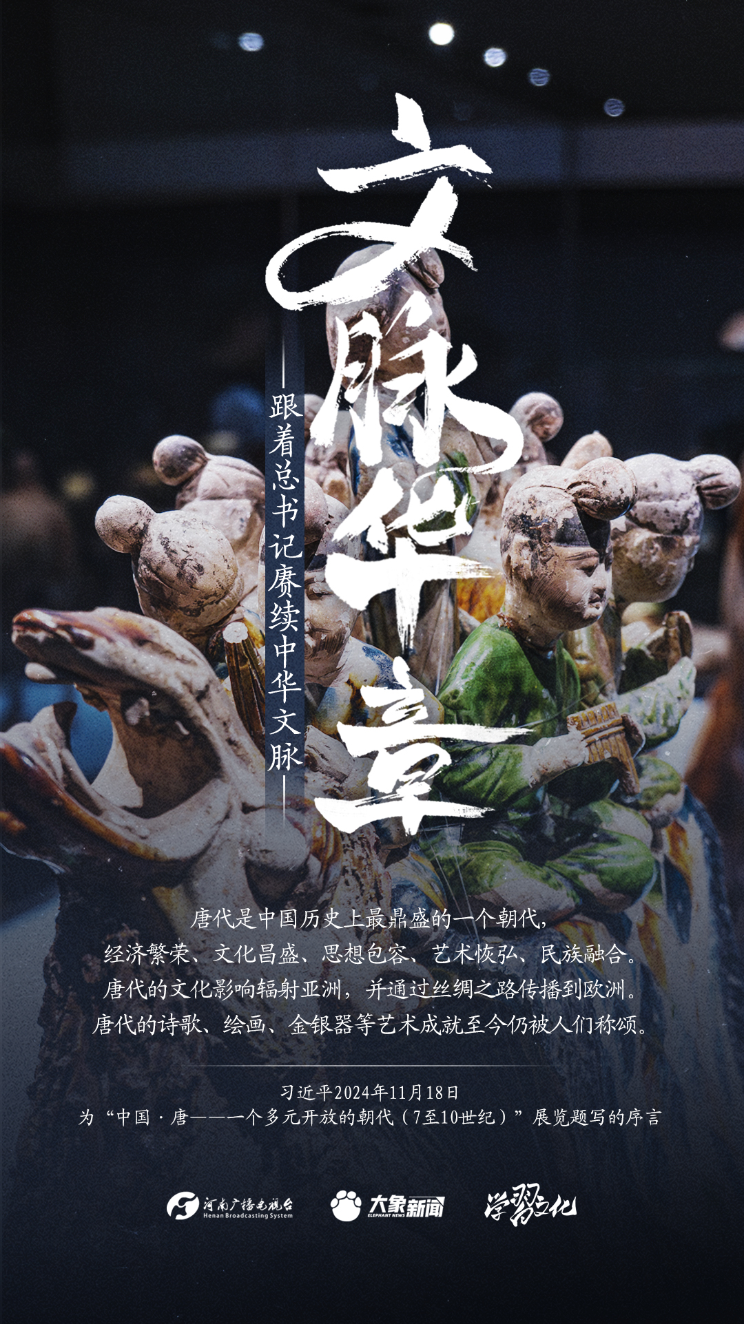 习近平总书记高度重视中华优秀传统文化的继承和弘扬。2024年,总书记一如既往,念兹在兹。在赴地方考察、主持召开重要会议等众多场合,多次对传承发展中华优秀传统文化作出重要讲话重要指示。大象新闻邀您一起,跟着总书记赓续中华文脉,推动中华优秀传统文化创造性转化和创新性发展,在新的起点上继续推动文化繁荣、建设文化强国、建设中华民族现代文明。