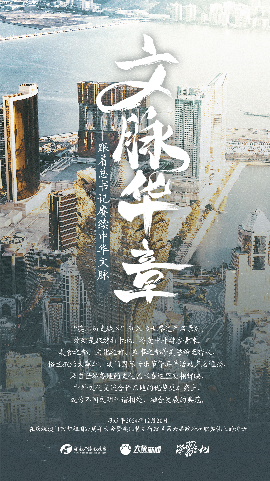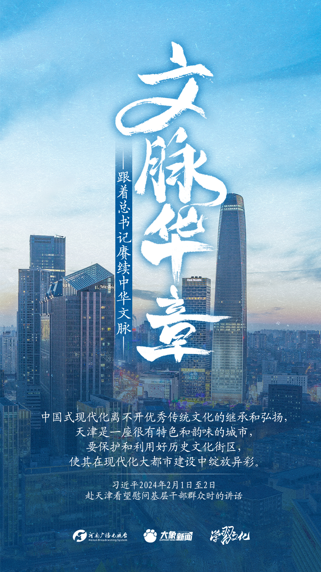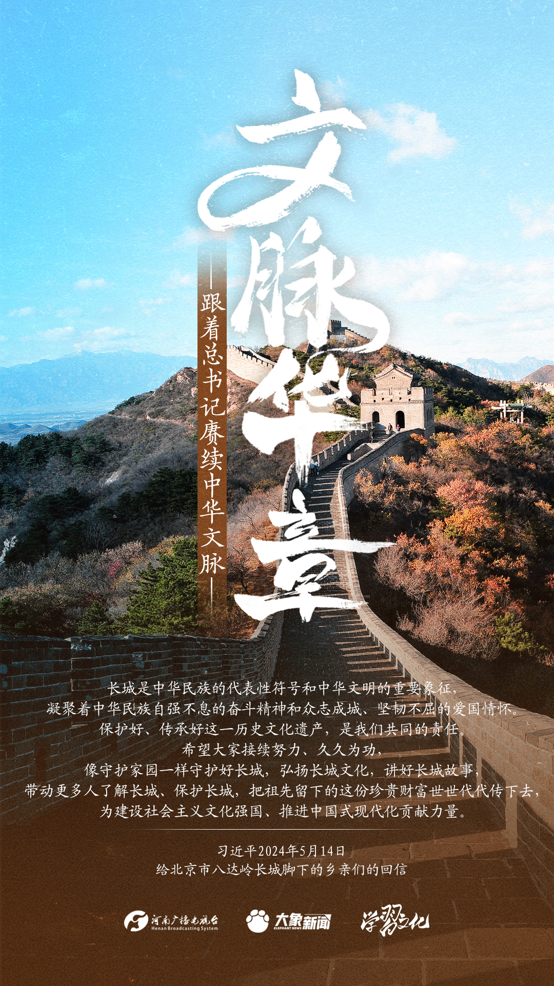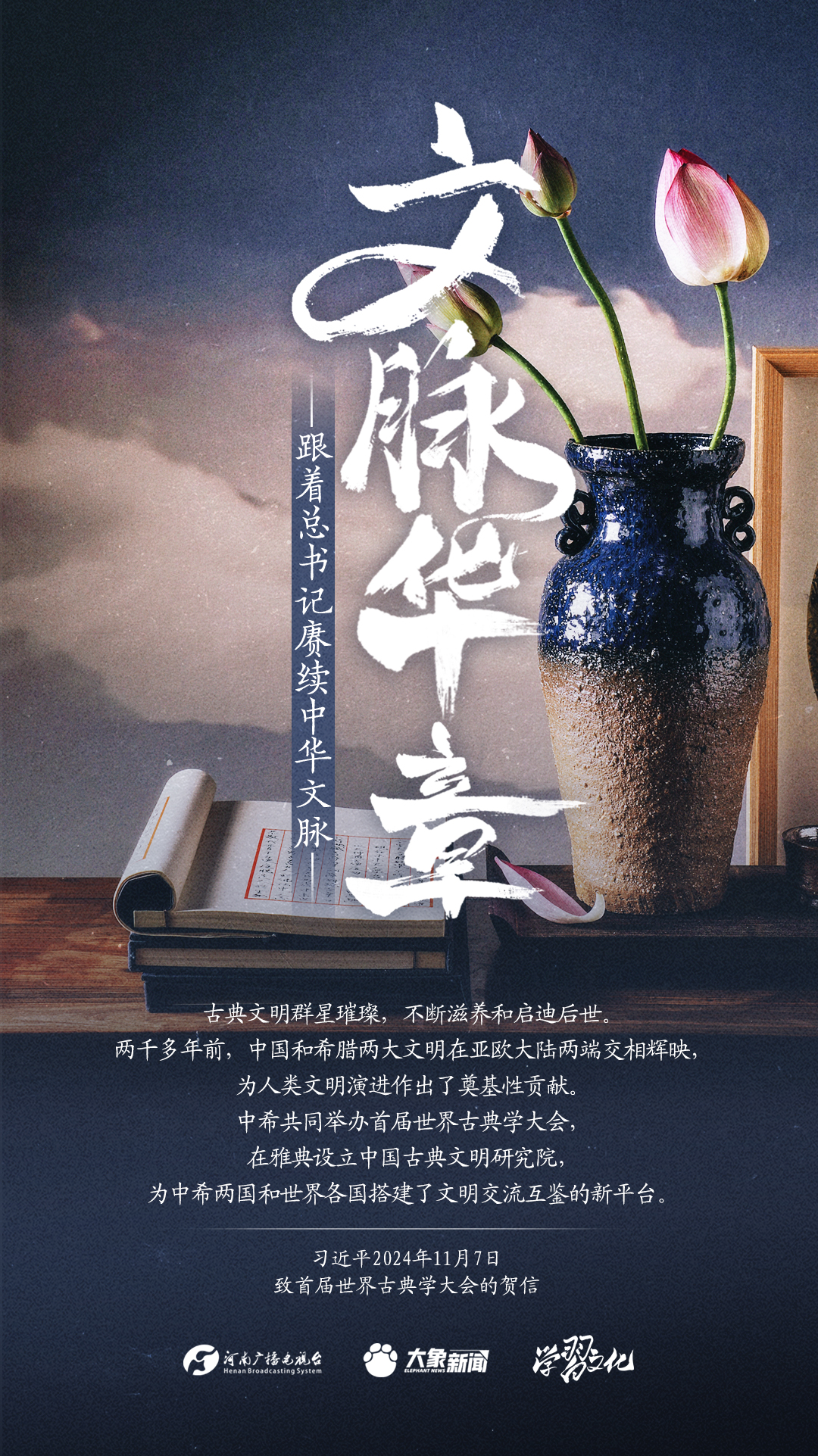 习近平总书记高度重视中华优秀传统文化的继承和弘扬。2024年,总书记一如既往,念兹在兹。在赴地方考察、主持召开重要会议等众多场合,多次对传承发展中华优秀传统文化作出重要讲话重要指示。大象新闻邀您一起,跟着总书记赓续中华文脉,推动中华优秀传统文化创造性转化和创新性发展,在新的起点上继续推动文化繁荣、建设文化强国、建设中华民族现代文明。