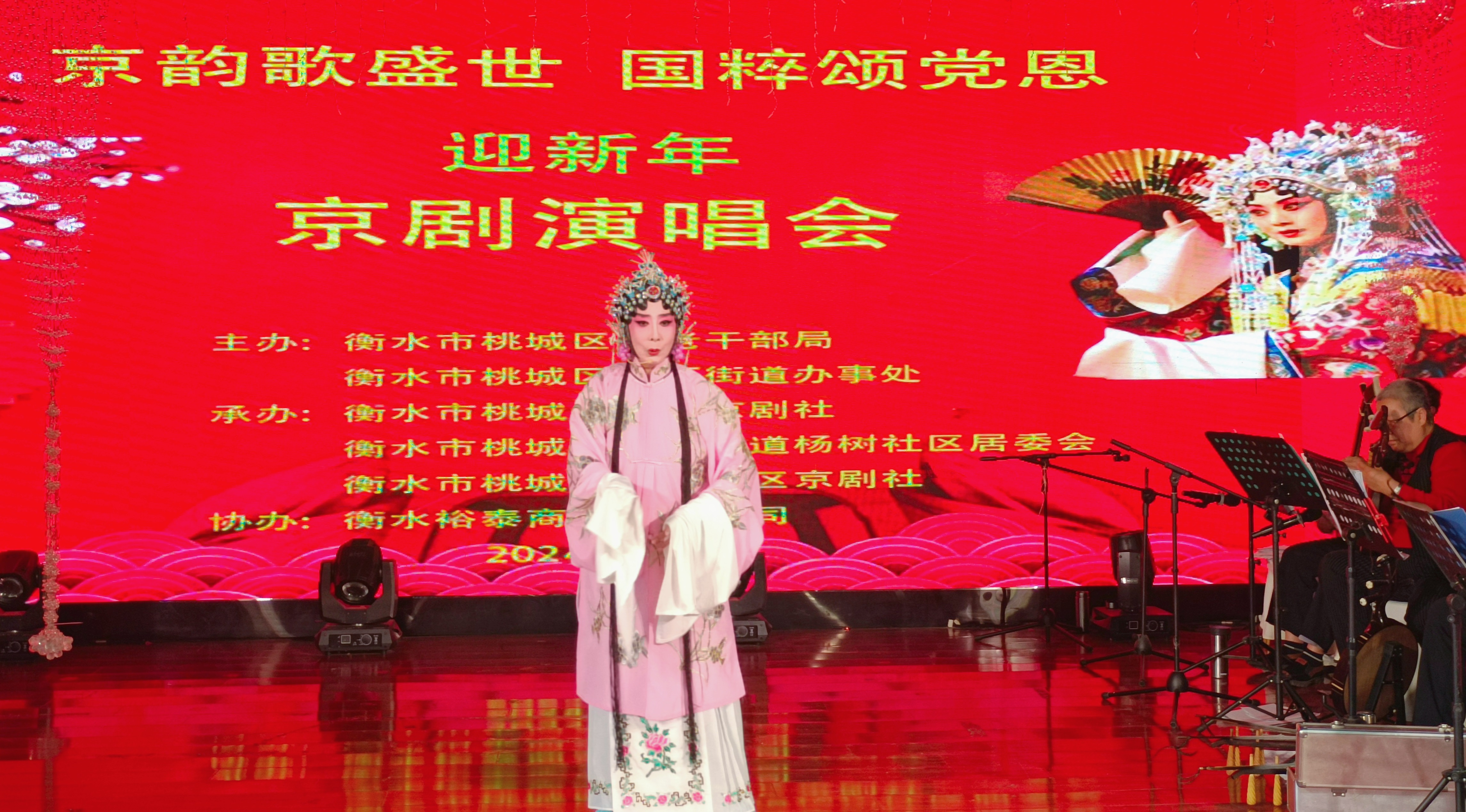 12月27日,桃城区河西街道杨树社区在鑫澳大酒店举办“京韵歌盛世 国粹颂党恩”迎新年京剧演唱会,旨在丰富居民精神文化生活,弘扬传统戏曲艺术,为居民群众送上元旦祝福。