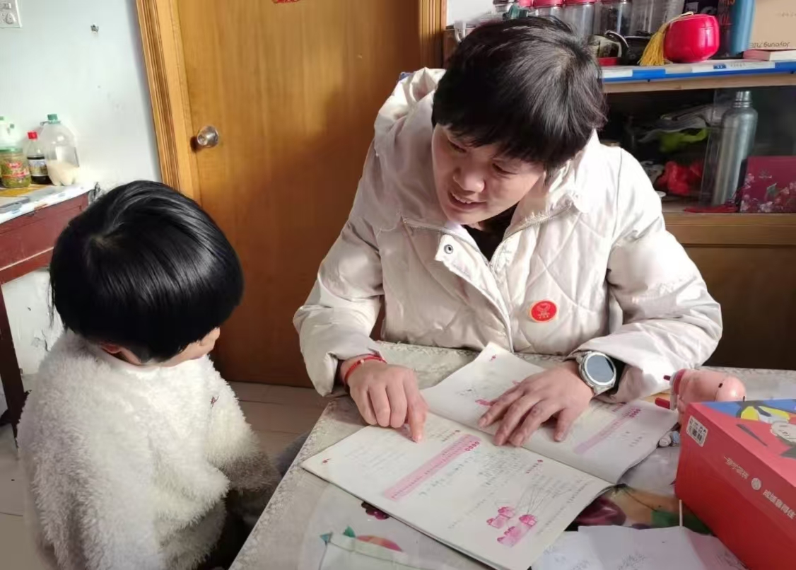 在辰时镇一个上五年级孩子的家里,张少彦老师在和孩子及家长的沟通中发现,爷爷、奶奶岁数大了,在管理和教育孩子的过程中有些力不从心,为此,主动帮忙辅导孩子写作业。孩子奶奶欣慰地说:“多亏有老师在,孩子的作业我是一点也辅导不了,每次放假就是最发愁的时候,感谢志愿者们的帮助。”爱心爸妈们纷纷表示,孩子们正是学习的好时候,以后要多和孩子沟通,给予孩子一个正向的引导。