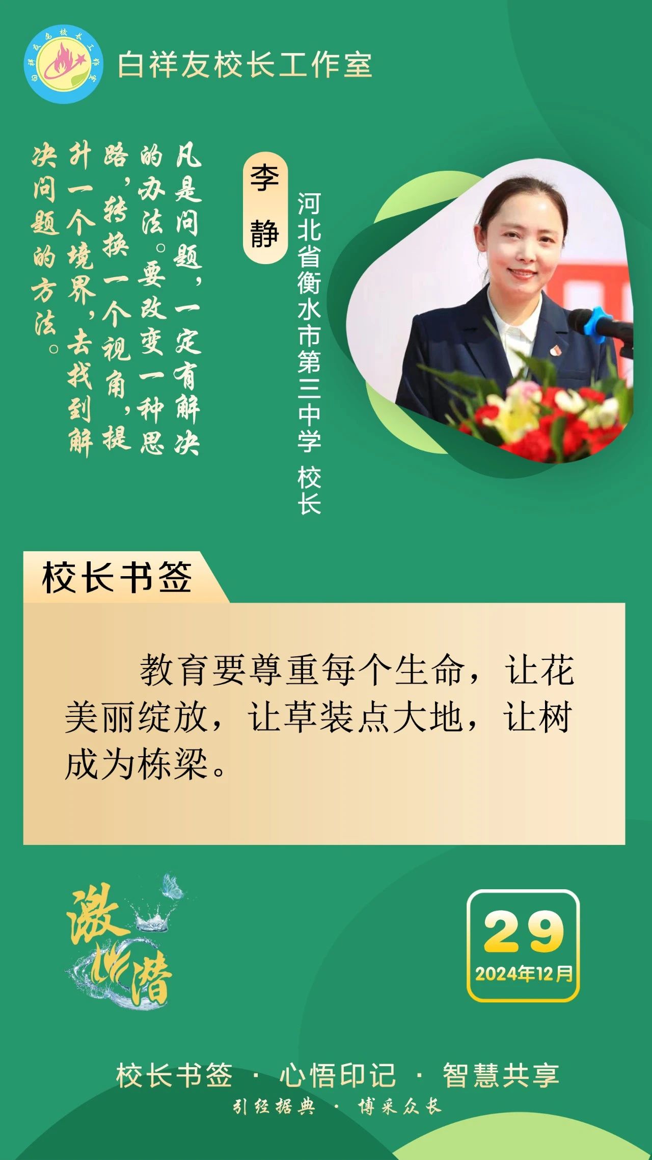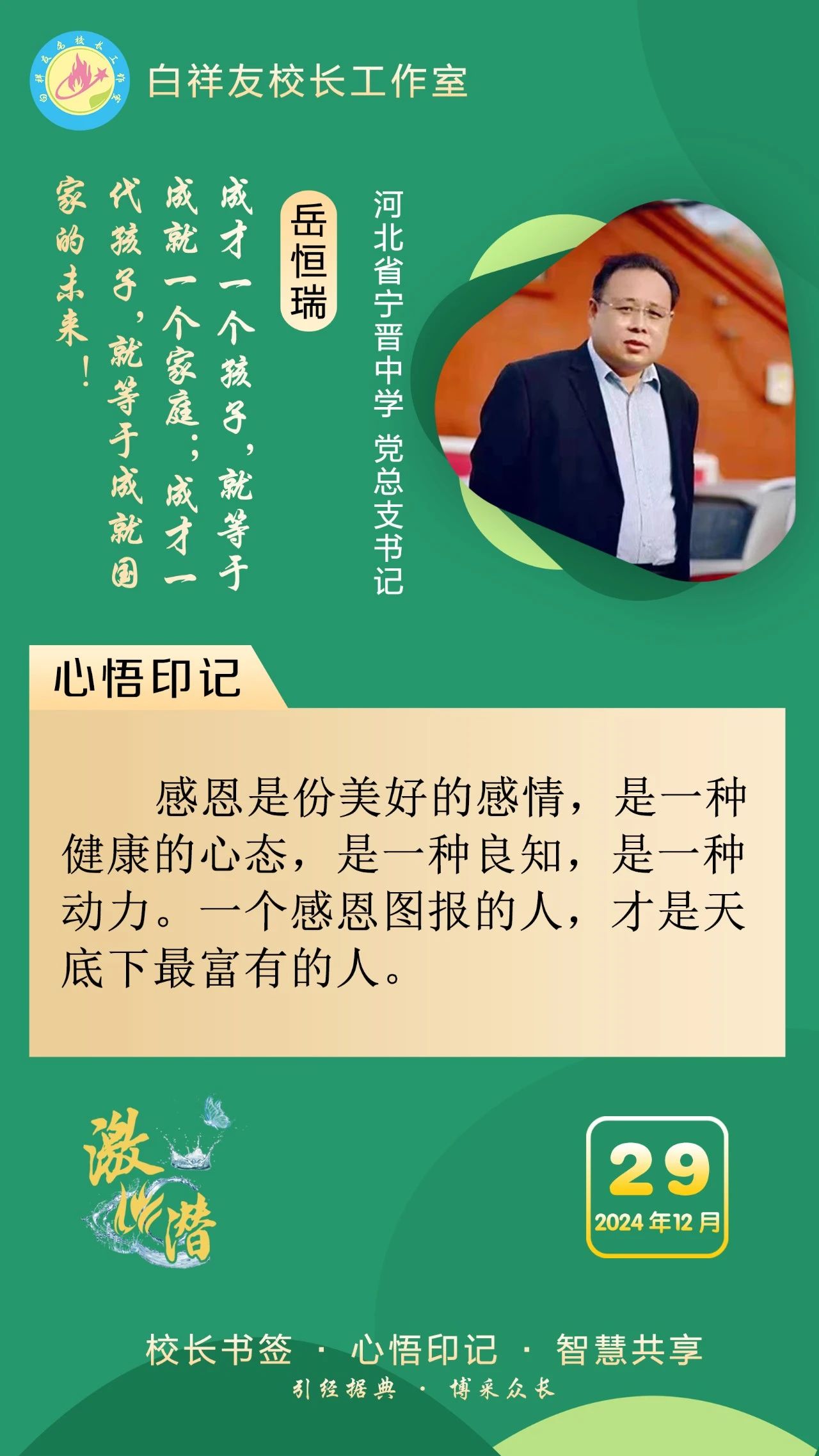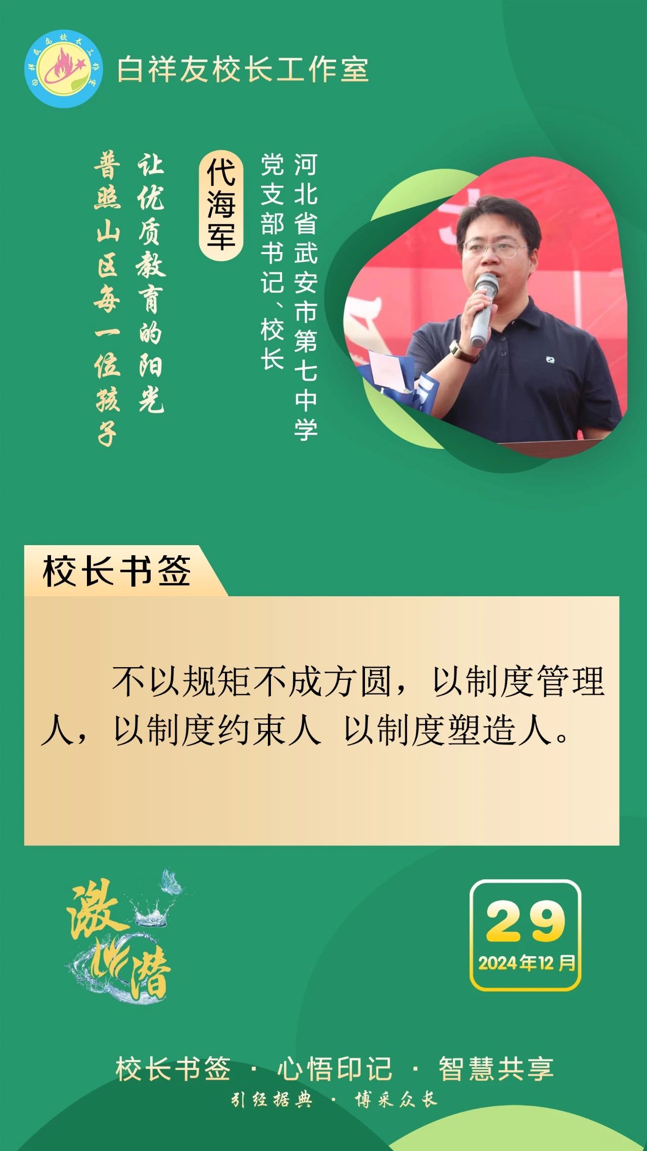 “白祥友校长工作室”成立于2019年4月,是教育部“国培计划”中小学名校长领航工程、河北省首批名校长工作室,目前省内外成员校48个。工作室坚持“资源共享、智慧共融、互助共赢”理念,已成为思想碰撞的交流场,资源共享的品牌站,成果展示的辐射源。