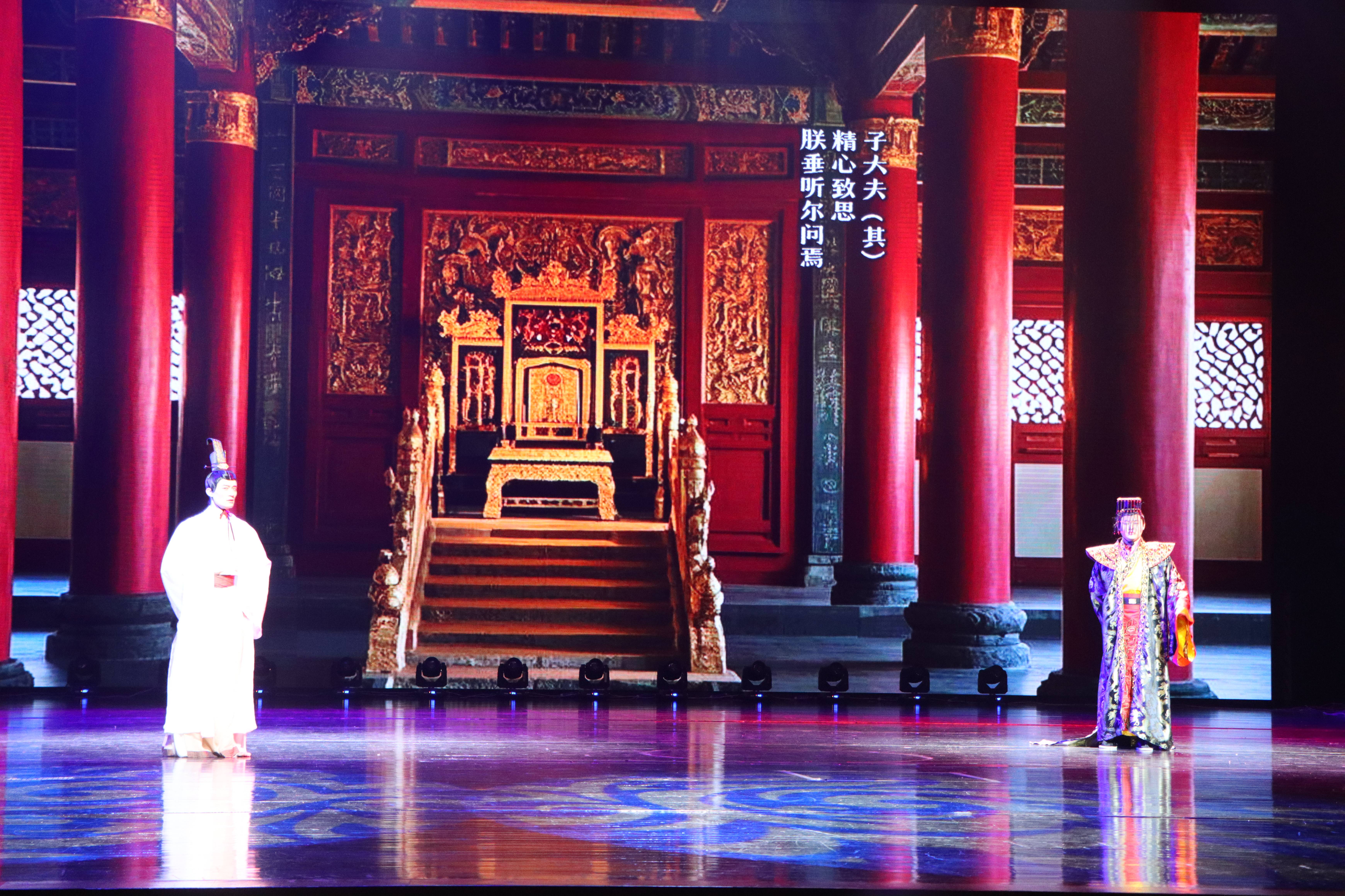 舞台上,演员们穿着精美的汉代服饰,用充满力量的身体语言和感人至深的吟诵,将董仲舒的故事生动地呈现在观众面前。每一个动作和每一句对白,都显得格外动人,引人深思。到场观众无不感慨地说:“这不仅是一次视觉和听觉的盛宴,更是一次心灵的洗礼。”