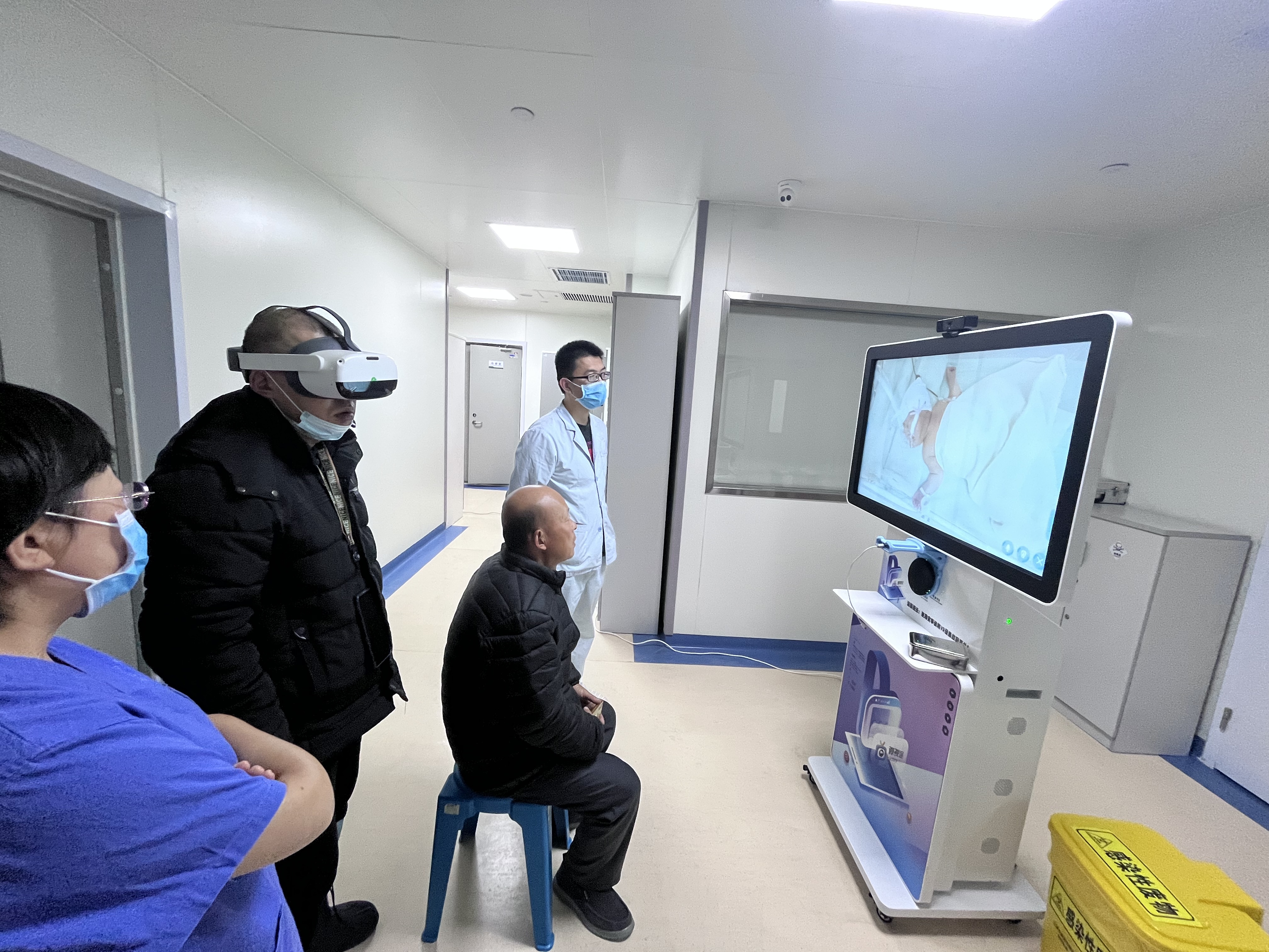 通过VR眼镜和360度的摄像头远程探视,患者家人可以看到新生儿的一举一动。