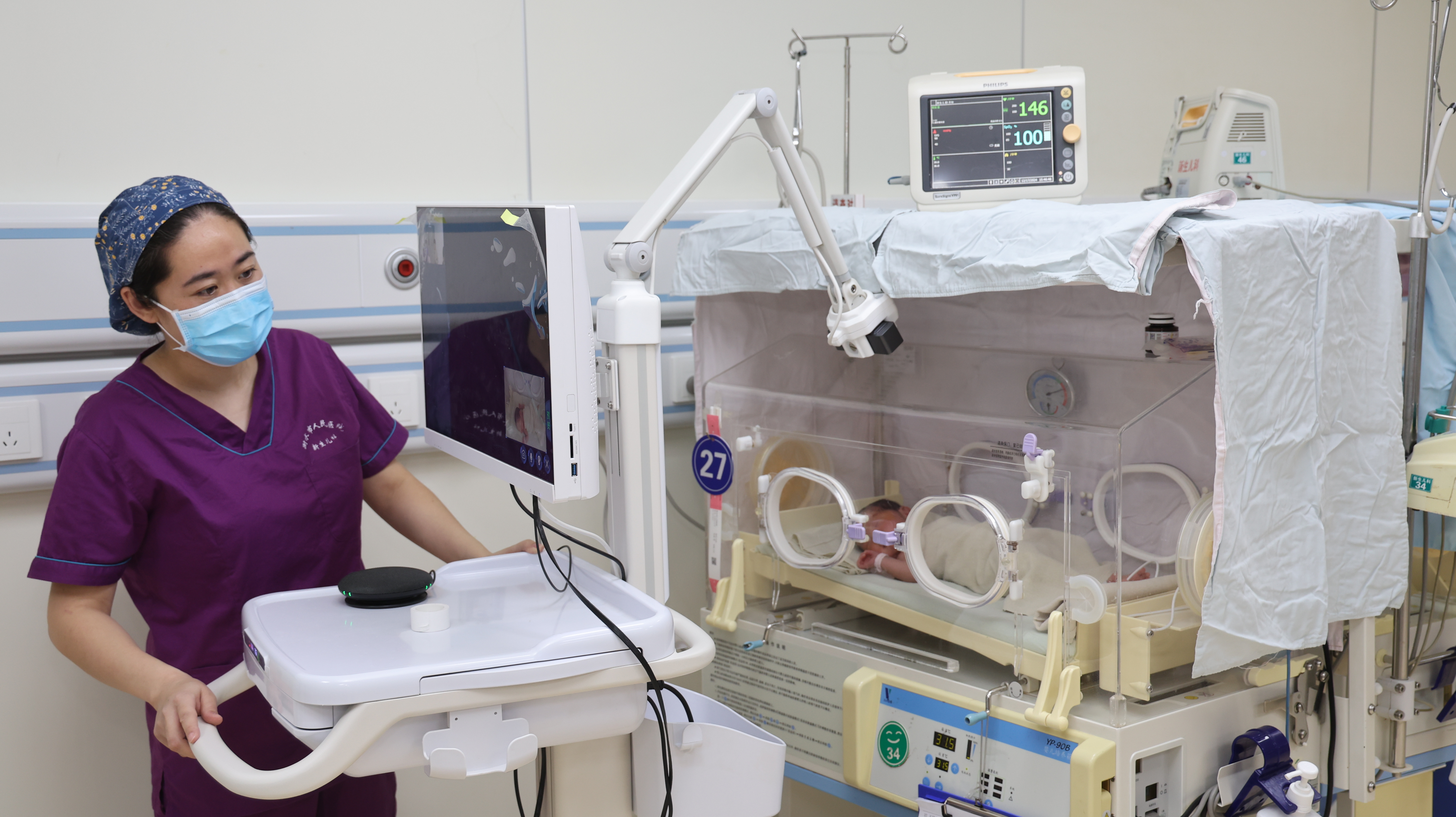 在用VR眼镜实现“全景探视”的同时,患者家人还可以实时与病房内的医务人员交流,询问宝贝的治疗以及生长情况。