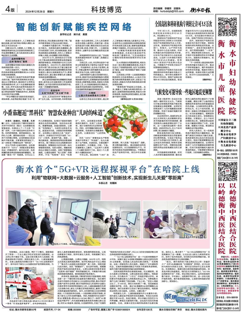 互联网医院带来的全新就医体验,拉近着医院、医生与患者之间的距离,让群众就医省心更暖心。哈院新生儿科,作为衡水市“十四五”市级医学重点学科,承担着全市危重症新生儿的抢救及转运工作,为降低衡水围产儿死亡率提供了坚实保障。于女士说:“宝宝31周就出生了,才1050克,我们只匆匆看了一眼,宝宝就被送进重症监护室。后来,通过VR眼镜和360度的摄像头远程探视,我们全家都可以实时了解宝宝的情况。哈院提供这样的人性化服务,太周到,太暖心啦!”