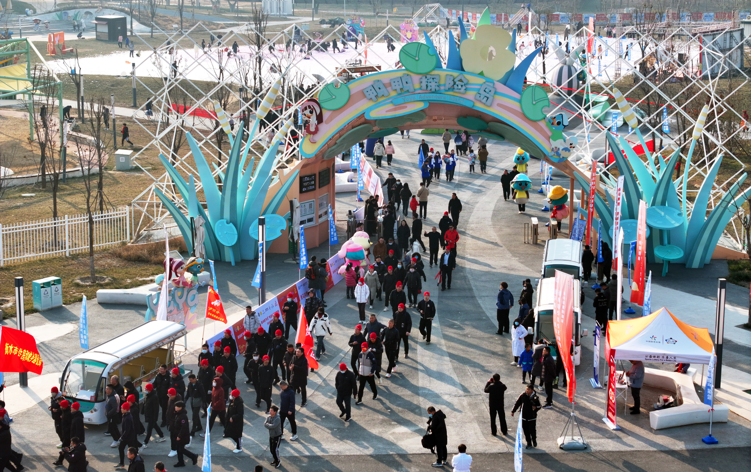 衡水市2025年元旦健康跑路线全长5公里,以鸭鸭探险岛为起点,最终到达滏阳楼山下。活动中,500余名跑步爱好者在健身运动教练的带领下,全身心地投入到热身活动。大家热情洋溢、活力四射,展现出良好的精神风貌。随着发令器响起,活动正式开始。参赛选手冲出起跑线,形成了一道亮丽的风景线。
