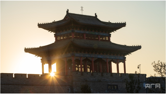 邯郸市大名古城迎来新年第一缕阳光,阳光与城楼辉映,更显古朴与庄重(央广网发 薛志朋 摄)