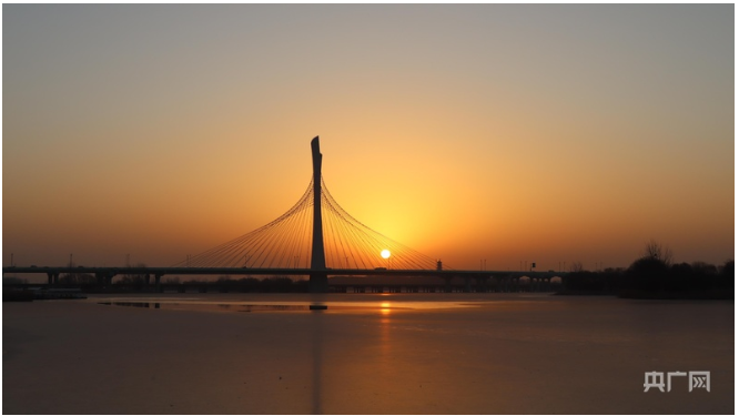新年的第一缕阳光穿透云端,石家庄市滹沱河特大桥迎来2025年第一个日出(央广网见习记者 胡思达 摄)