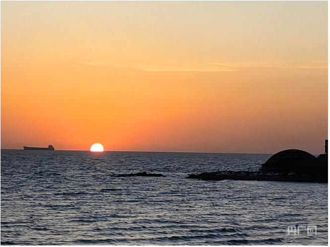 在秦皇岛市北戴河鸽子窝景区,日出海上,壮丽宁静(央广网发 李雪垠 摄)